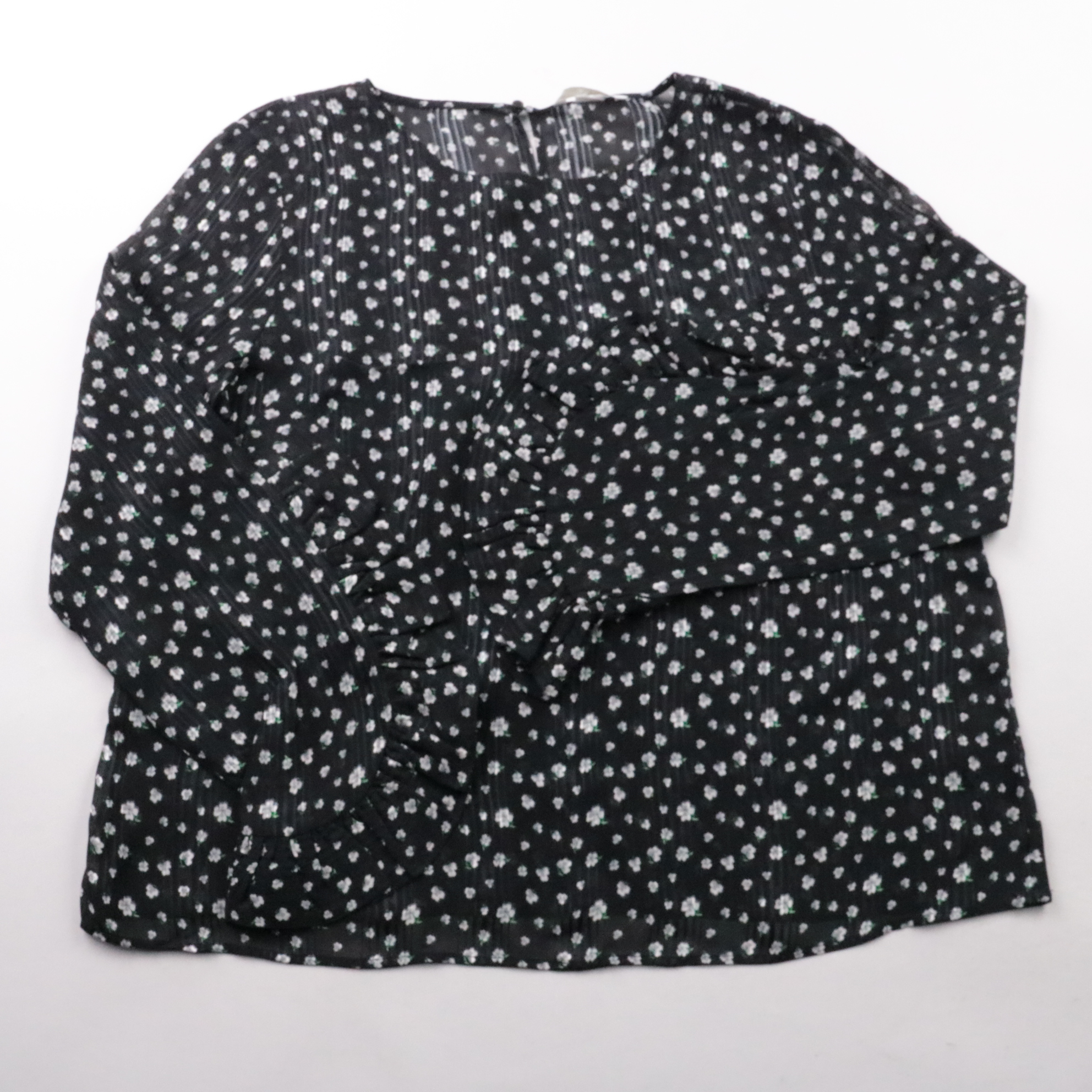 Женская блузка H&M из вискозы, чёрная с мелким цветочным принтом и длинным рукавом. Подойдёт для офиса и повседневных образов с джинсами или юбкой, ткань лёгкая и комфортная. Вискоза хорошо драпируется и приятно ощущается на коже.
