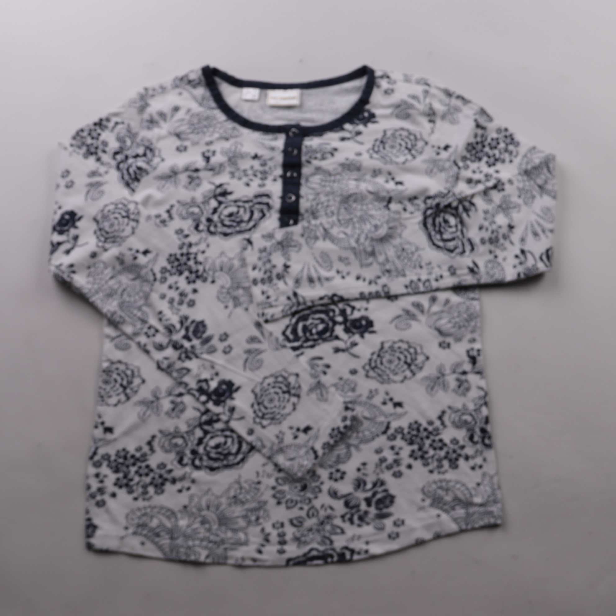 Блузка Rainbow с длинным рукавом и цветочным принтом в серо-синих тонах, с планкой на пуговицах у горловины. Подойдёт для повседневной носки и офиса в сочетании с джинсами или брюками. Тонкий трикотаж мягко ощущается на коже и удобен для многослойных о...
