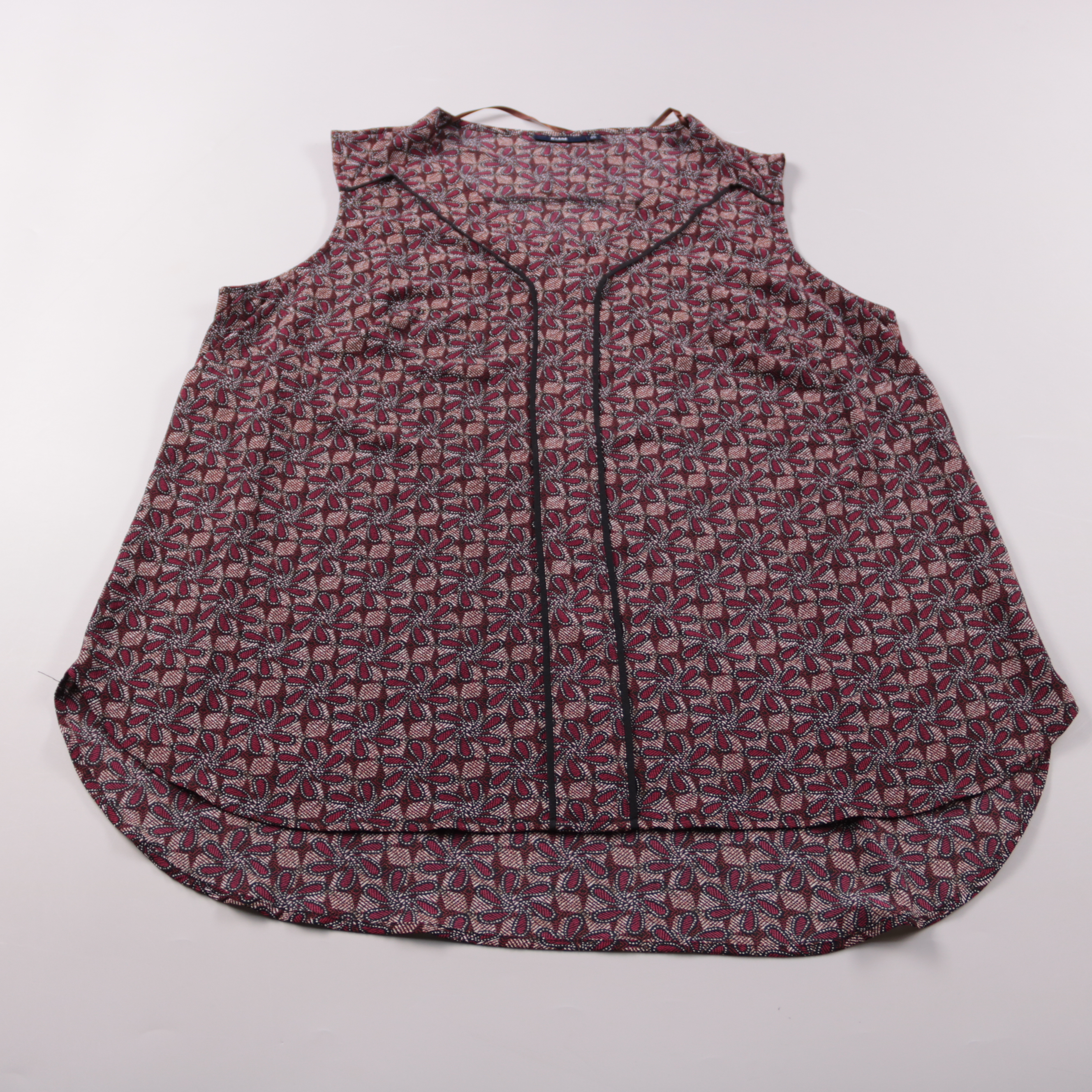 Женская блузка Kiabi без рукавов с V-образным вырезом и цветочным принтом. Подойдёт для тёплой погоды и повседневных образов с джинсами или юбкой. Лёгкая ткань и свободный крой не сковывают движения.