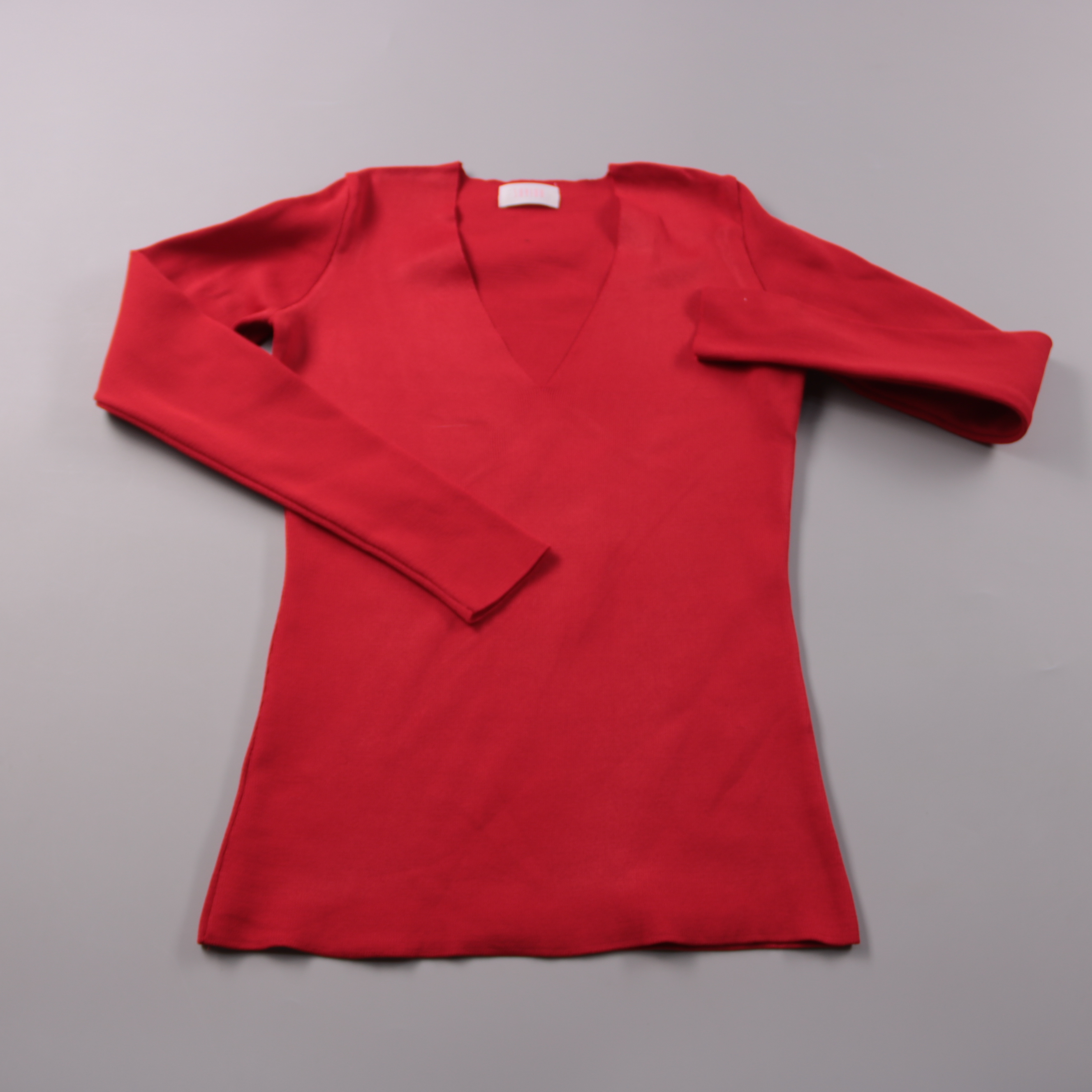 Красная блузка Sandro с длинными рукавами и V-образным вырезом. Подойдёт для офиса и выхода, хорошо сочетается с брюками и юбками. Практичный плюс — плотный полиэстер почти не мнётся и быстро сохнет.