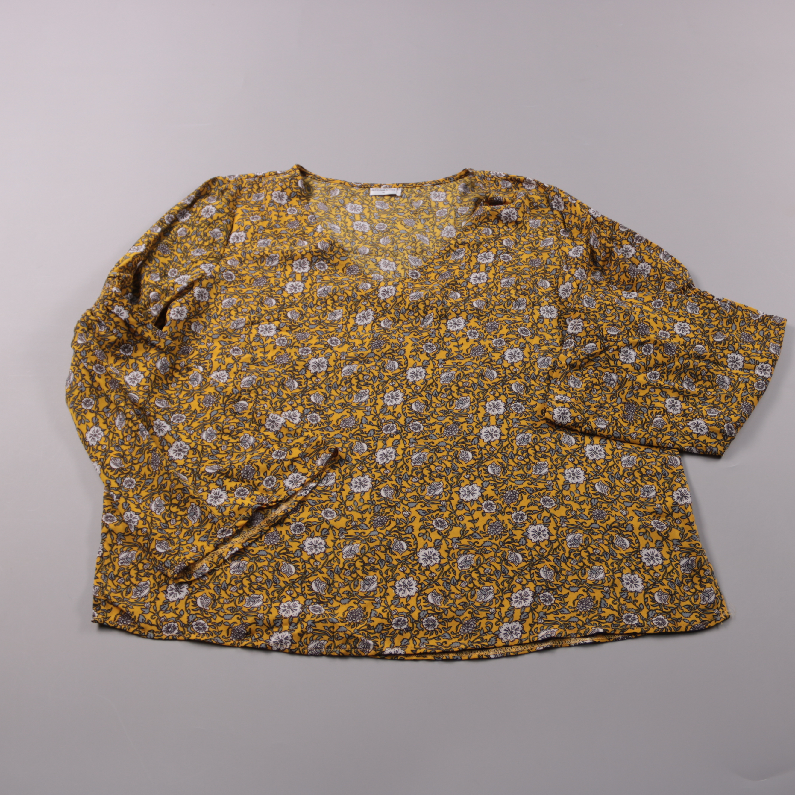 Блузка Jacqueline de Yong горчичного цвета с мелким цветочным принтом и свободной посадкой. Подойдёт для повседневных образов и офиса с базовыми брюками или джинсами. Лёгкая ткань и длинный рукав делают её удобной для носки в течение дня.