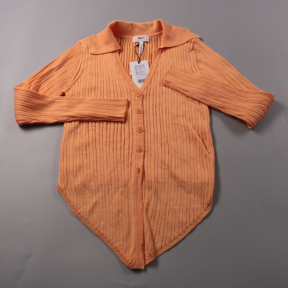 Трикотажная блузка Object в рубчик персикового оттенка с воротником и застёжкой на пуговицы. Подойдёт для повседневных и офисных образов, хорошо сочетается с джинсами и юбками. Практичный плюс — эластичный материал комфортно садится по фигуре и не сков...