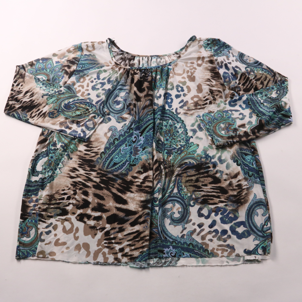 Женская блузка с ярким комбинированным принтом (пейсли и анималистичный), свободного кроя. Подойдёт для повседневных образов и офиса без строгого дресс-кода, хорошо сочетается с однотонными брюками или джинсами. Ткань почти не мнётся и быстро сохнет, у...