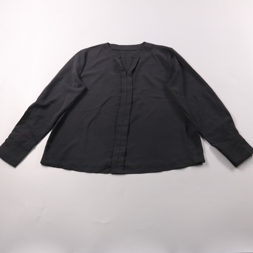 Женская блузка Shein чёрного цвета с длинным рукавом и лаконичным вырезом у горловины. Подойдёт для офиса и повседневных образов, легко сочетается с брюками и юбками. Практичный материал из полиэстера почти не мнётся и быстро сохнет.