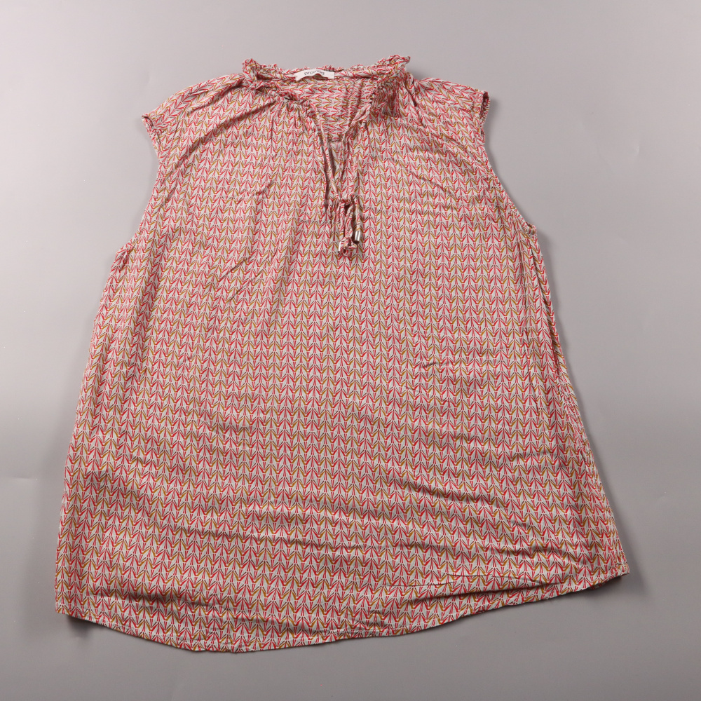 Лёгкая блузка Promod без рукавов с геометрическим принтом и завязками у выреза. Подойдёт для тёплой погоды и повседневных образов с джинсами или шортами. Вискоза хорошо дышит и комфортно ощущается на коже.