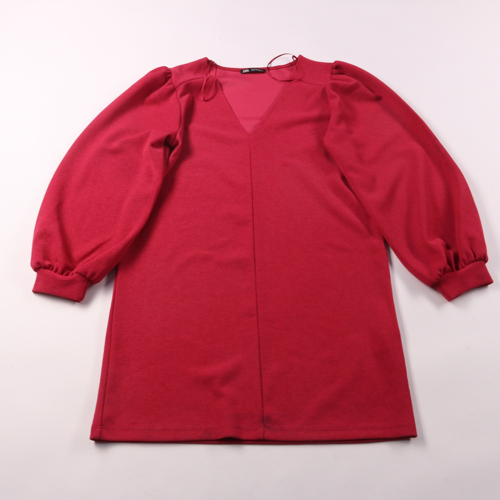 Блузка Zara насыщенного красного цвета с V-образным вырезом и объёмными рукавами. Подойдёт для офиса, встреч и вечерних выходов, хорошо сочетается с юбкой или брюками. Практичный плюс — ткань почти не мнётся и немного тянется за счёт эластана.