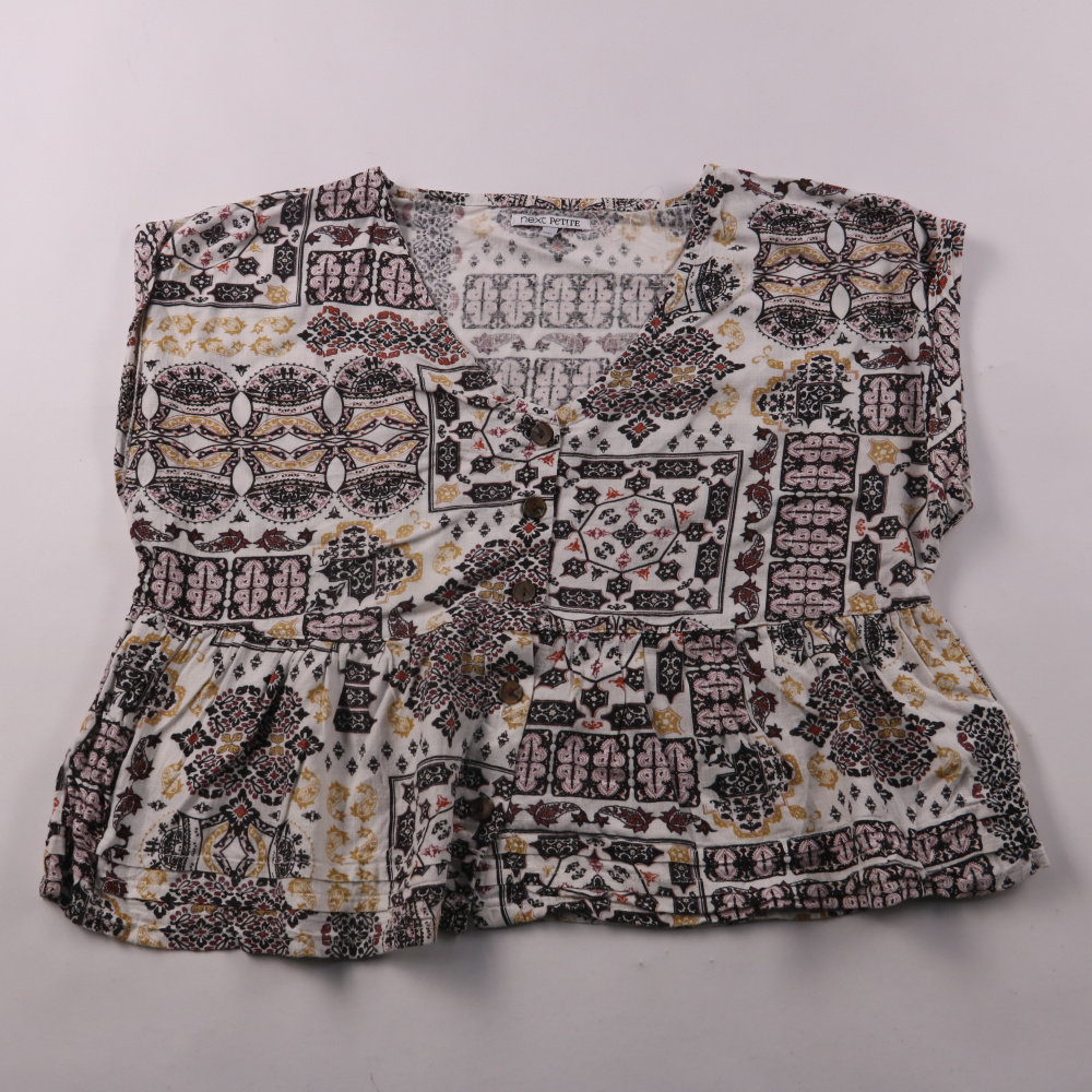 Лёгкая блузка Next Petite с коротким рукавом и узорчатым принтом, застёгивается на пуговицы и имеет расклешённый низ. Подойдёт для тёплой погоды и повседневных образов с джинсами или шортами. Смесь вискозы и льна хорошо пропускает воздух и комфортна в ...