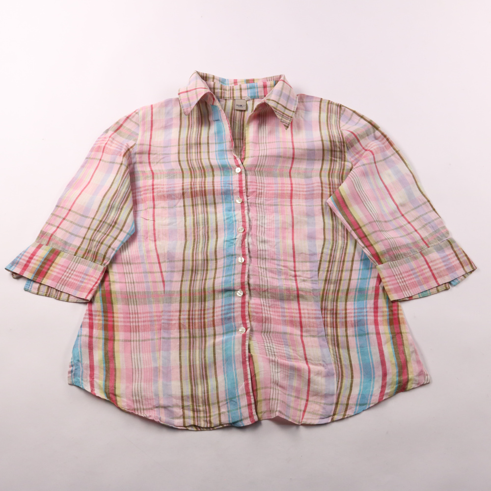Женская рубашка SIE в разноцветную клетку, застёгивается на пуговицы и с отложным воротником. Подойдёт для повседневных образов и офиса в стиле casual, можно носить навыпуск или заправленной. Лёгкая ткань хорошо пропускает воздух и комфортна в течение ...
