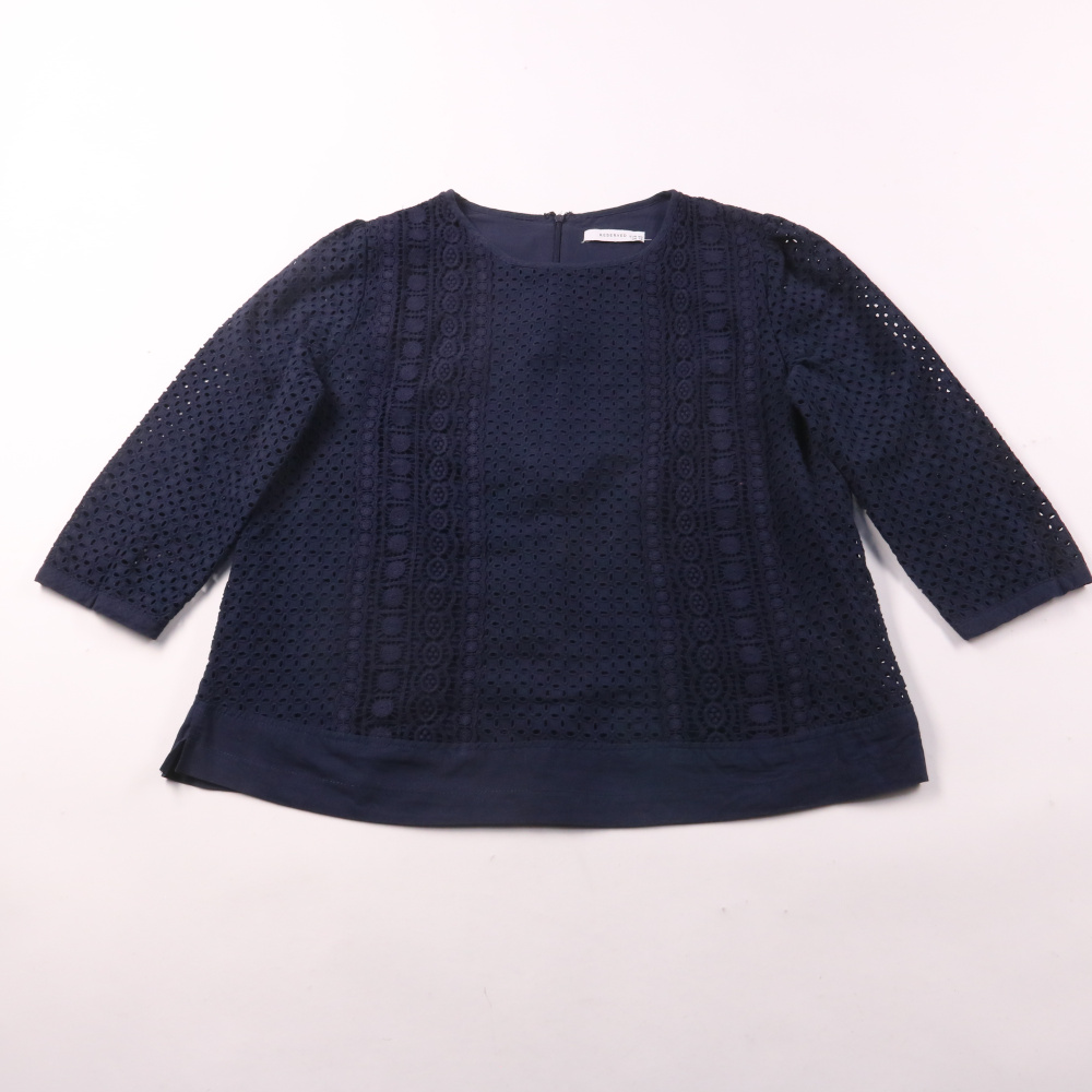 Женская блузка Reserved тёмно-синего цвета с ажурной фактурой и рукавом 3/4. Подойдёт для офиса и повседневных образов с брюками или юбкой, благодаря спокойному оттенку и аккуратному крою. Практичный плюс — лёгкий материал и удобная застёжка-молния сзади.