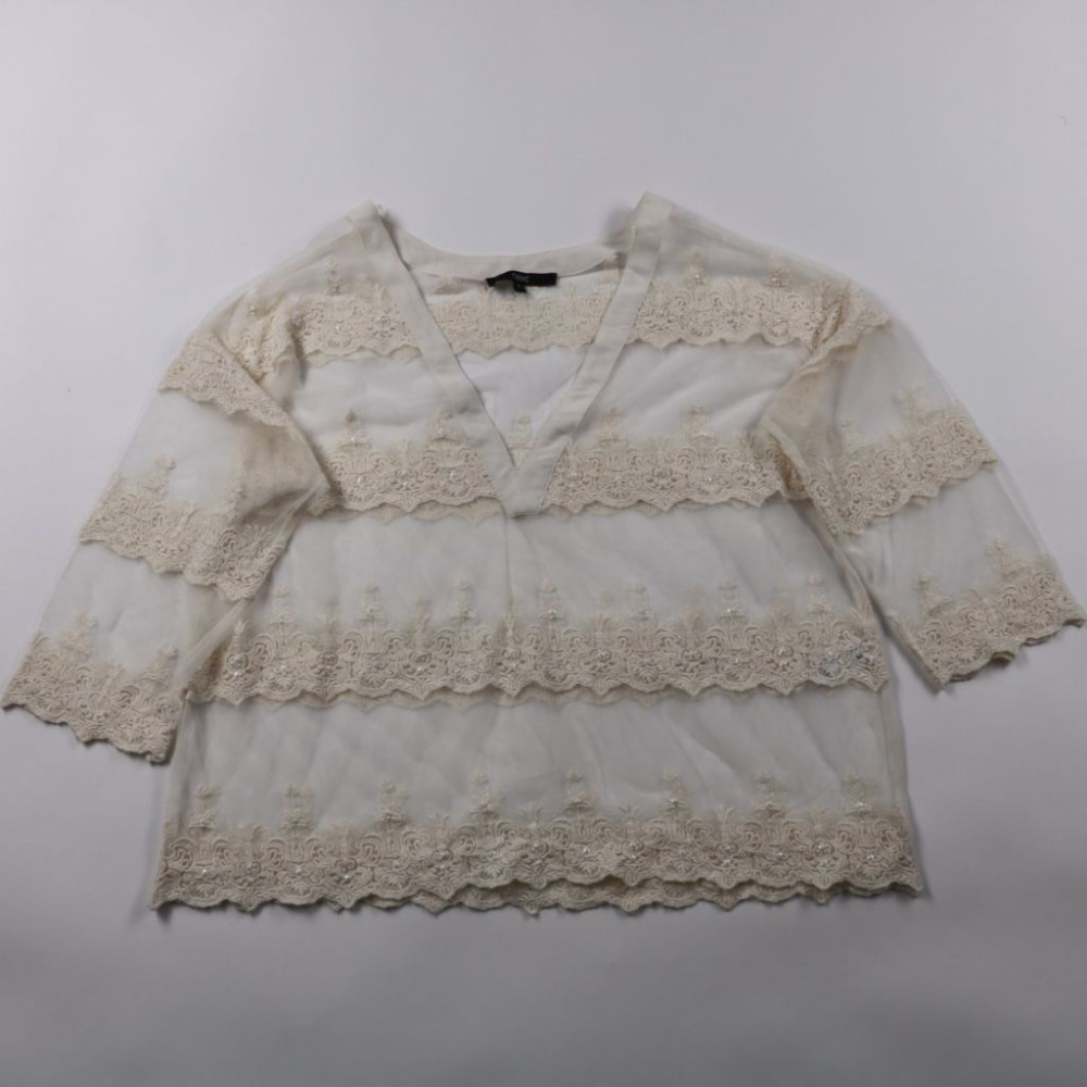 Блузка Next молочного цвета из полупрозрачной ткани с кружевными вставками и V‑образным вырезом. Подойдёт для повседневных и более нарядных образов, удобно носить с топом или майкой под низ. Лёгкая и почти не мнётся благодаря полиэстеру.