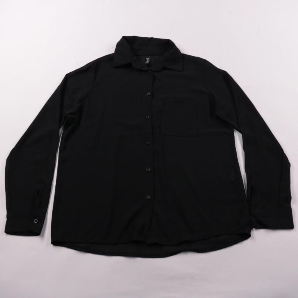Блузка White Angel чёрного цвета на пуговицах, с отложным воротником и нагрудным карманом. Подойдёт для офиса и повседневных образов, легко сочетается с брюками и юбками. Практичный плюс — ткань из полиэстера почти не мнётся и проста в уходе.