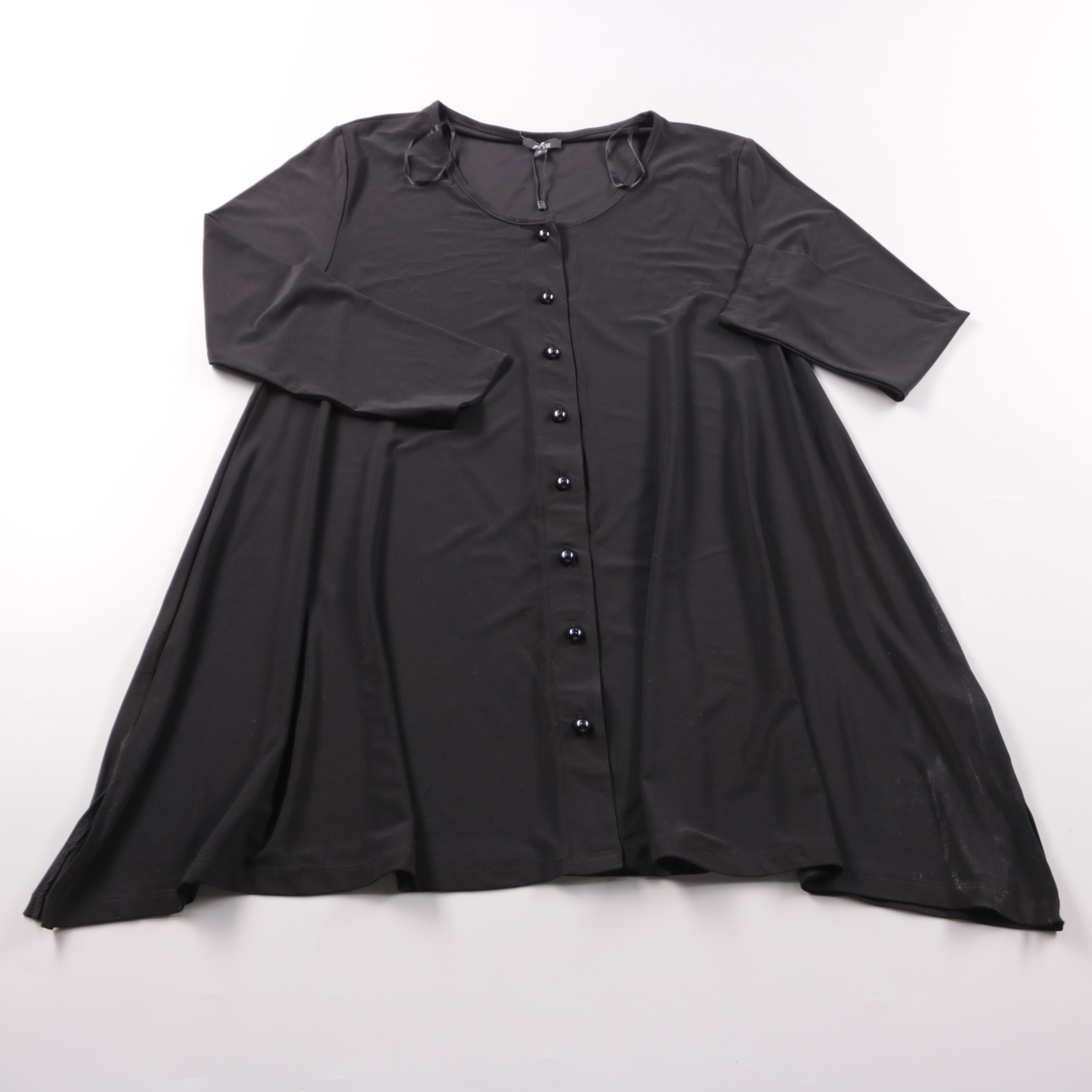 Женская блузка g:ozé из чёрной гладкой ткани на пуговицах, с расклешённым силуэтом и длинным рукавом. Подойдёт для офиса и на каждый день — легко сочетается с брюками и юбками. Практичный плюс: материал с эластаном слегка тянется и комфортно садится по...