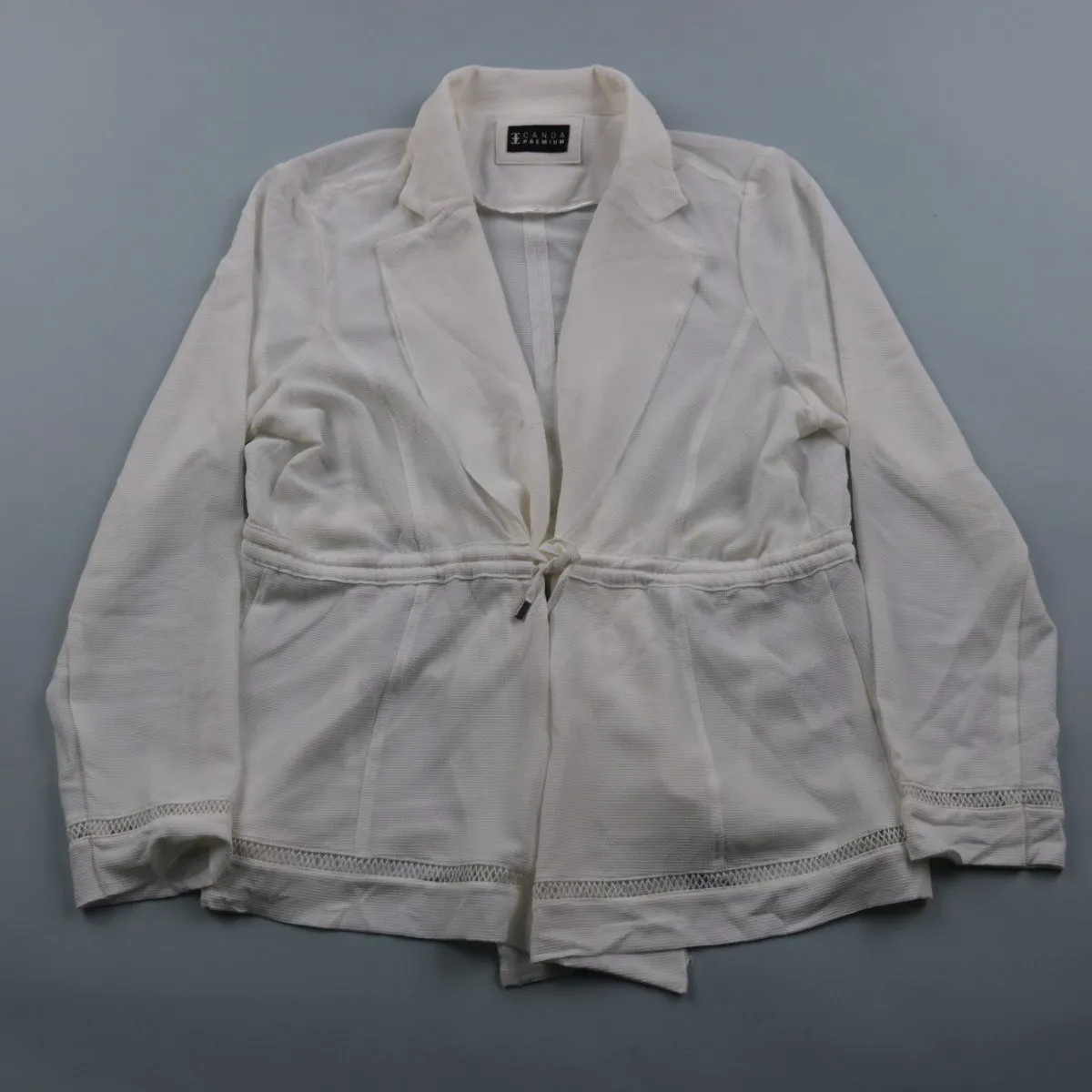 Женская белая блузка Canda Premium с воротником-лацканами и завязкой на талии. Подойдёт для офиса и на каждый день, легко сочетается с брюками и юбками. Ткань с добавлением эластана немного тянется и комфортно сидит.