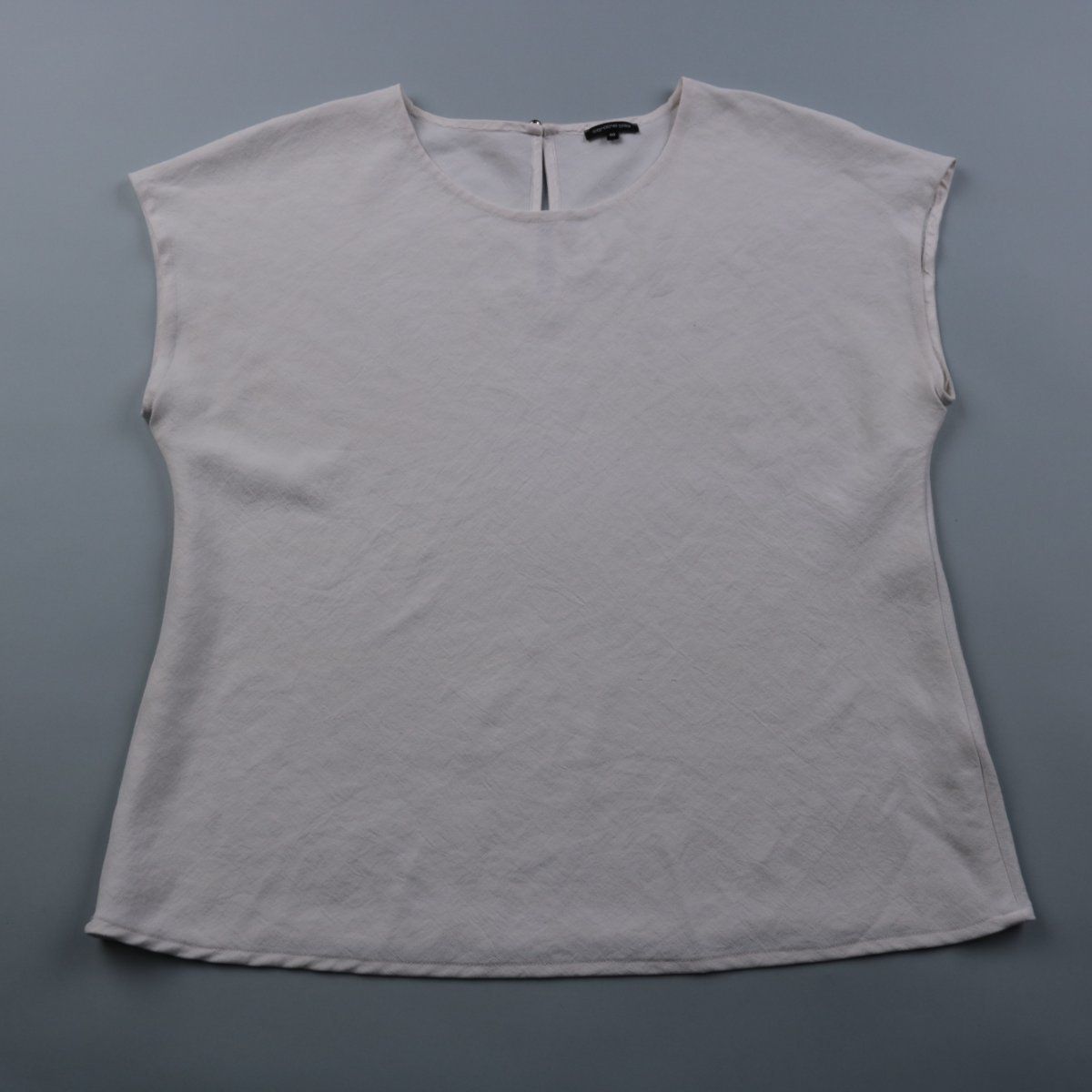 Женская блузка Caroline Biss светлого оттенка, прямого кроя с округлым вырезом. Сзади есть разрез-капля и застёжка на пуговицу — удобно надевать и красиво смотрится под жакет. Подойдёт для офиса и повседневных летних образов, легко сочетается с юбками и брюками.