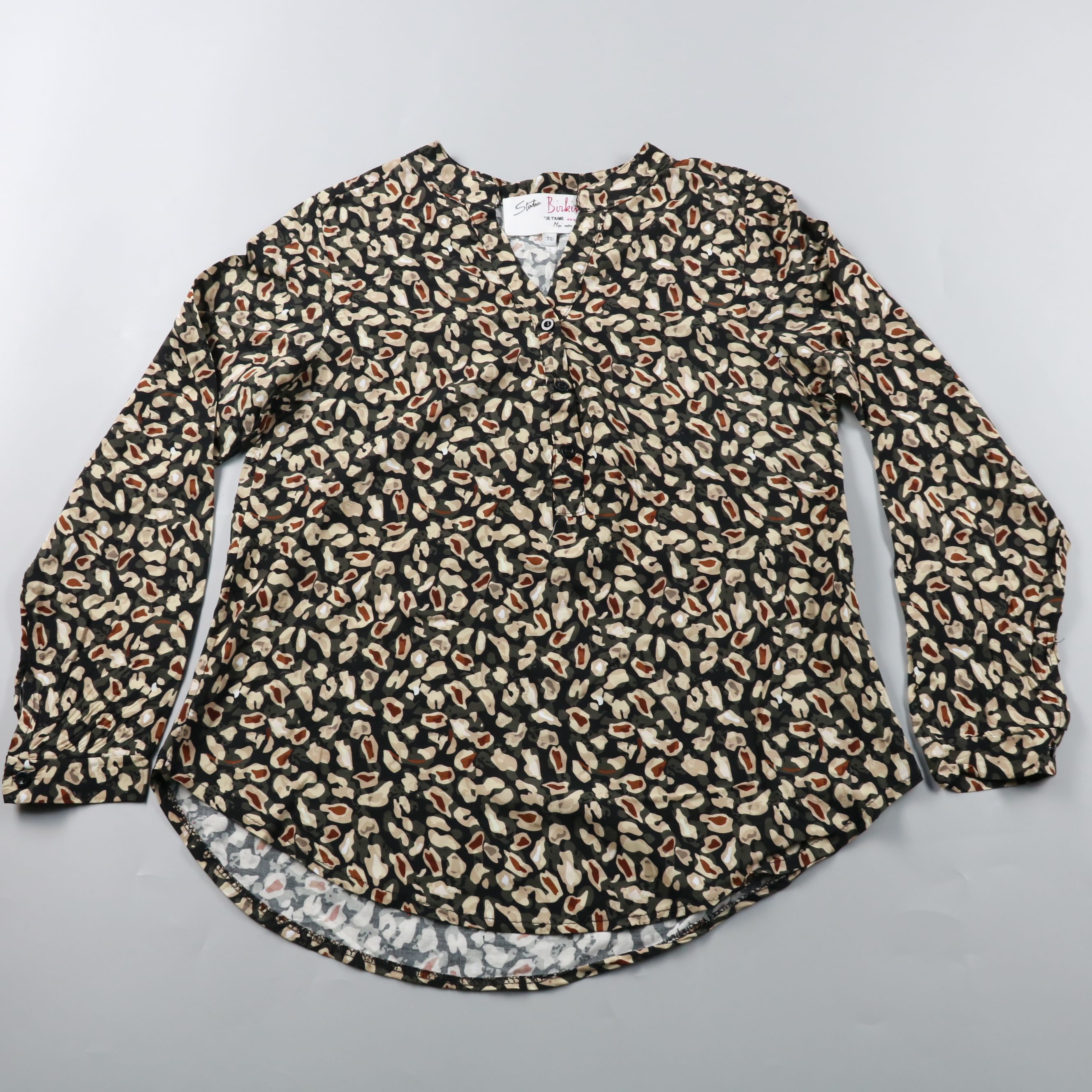 Женская блузка Studio Birkin из вискозы, с длинным рукавом и V-образным вырезом на пуговицах, принт в стиле анимал. Подойдёт для повседневных образов и офиса в прохладную погоду, легко сочетается с джинсами и брюками. Практичное преимущество — лёгкая и...
