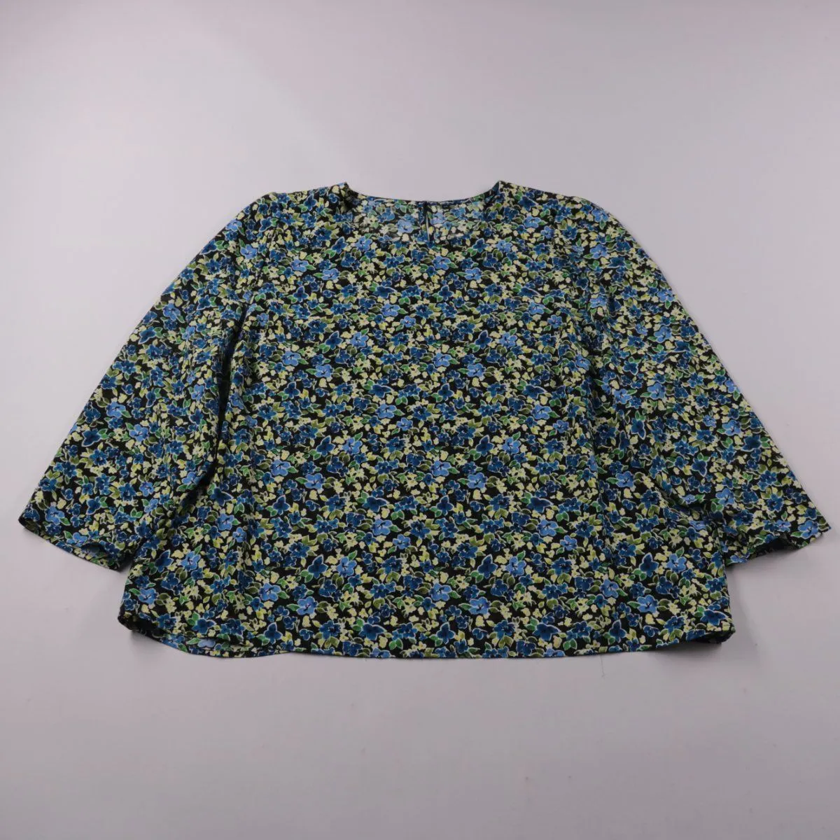 Женская блузка с цветочным принтом, свободный крой и длинный рукав. Подойдёт для повседневных образов в офис или на прогулку. Лёгкая ткань из полиэстера быстро сохнет и почти не мнётся.