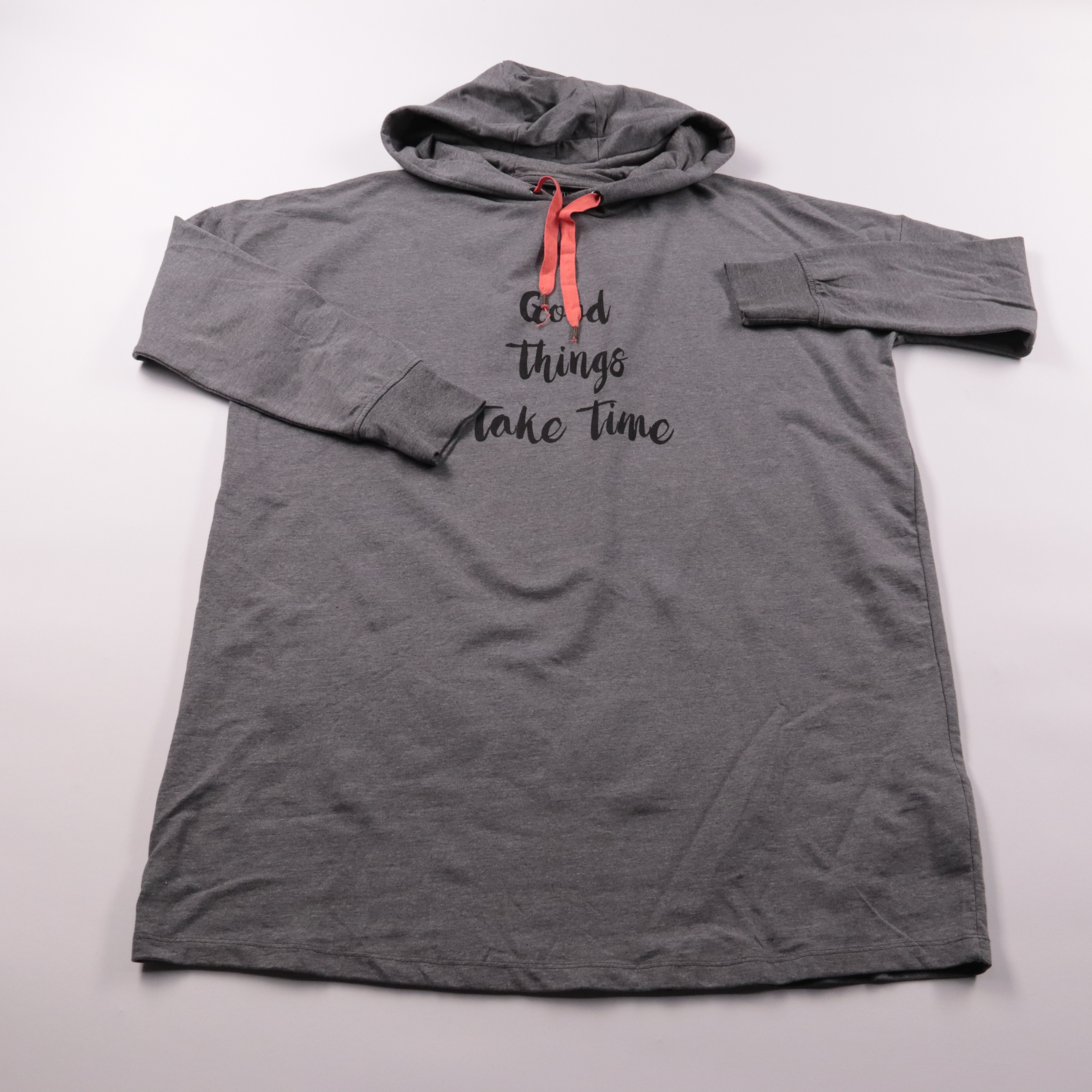 Женская толстовка Esmara серого цвета с капюшоном и надписью «Good things take time». Подойдёт для прогулок и домашнего отдыха в прохладную погоду, хорошо сочетается с джинсами и спортивными брюками. Практичный плюс — мягкий трикотаж с добавлением поли...