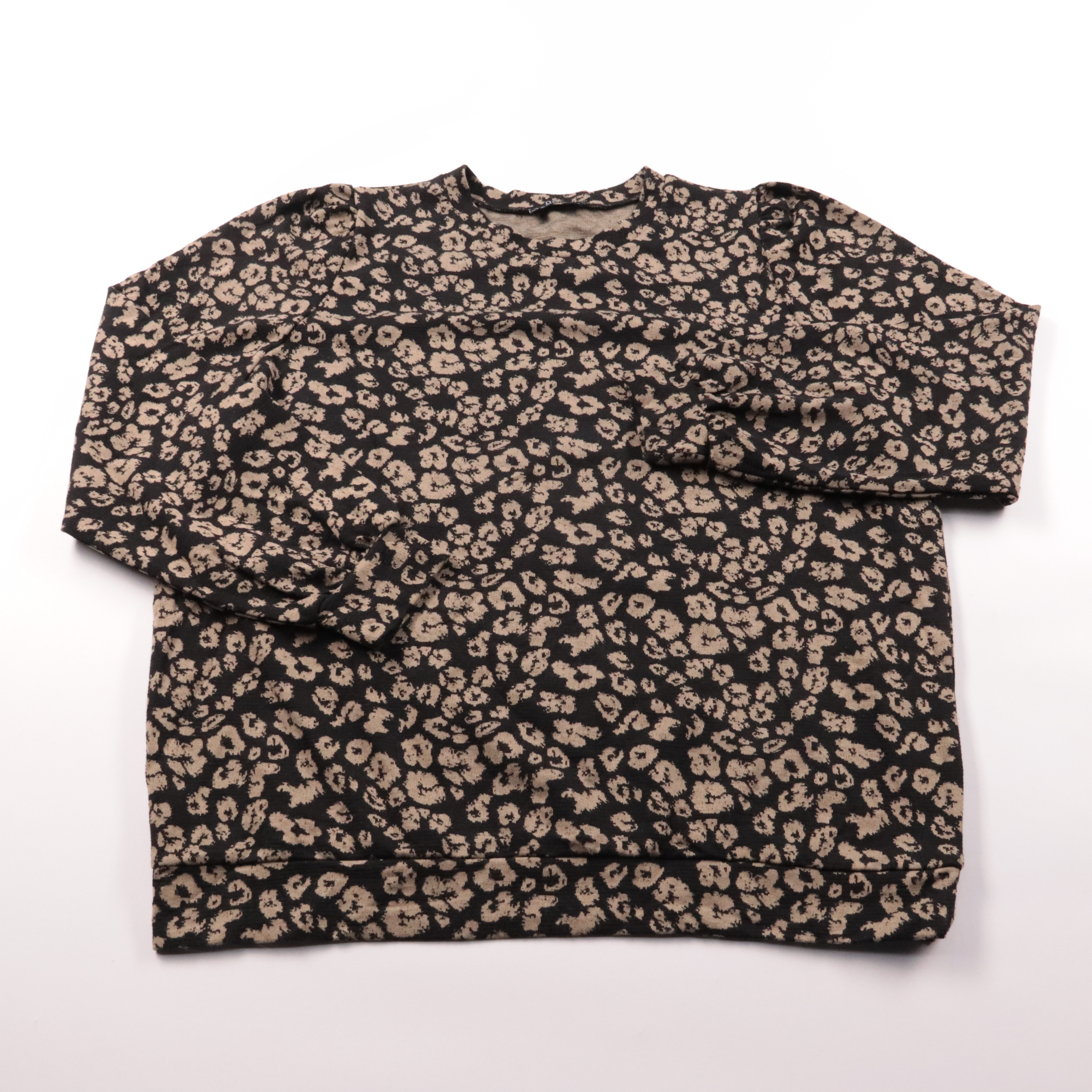 Свитшот Norah с леопардовым принтом в бежево-чёрной гамме и круглым вырезом. Подойдёт для повседневных образов в прохладную погоду, легко сочетается с джинсами и однотонными брюками. Ткань с эластаном хорошо тянется и комфортно садится по фигуре.