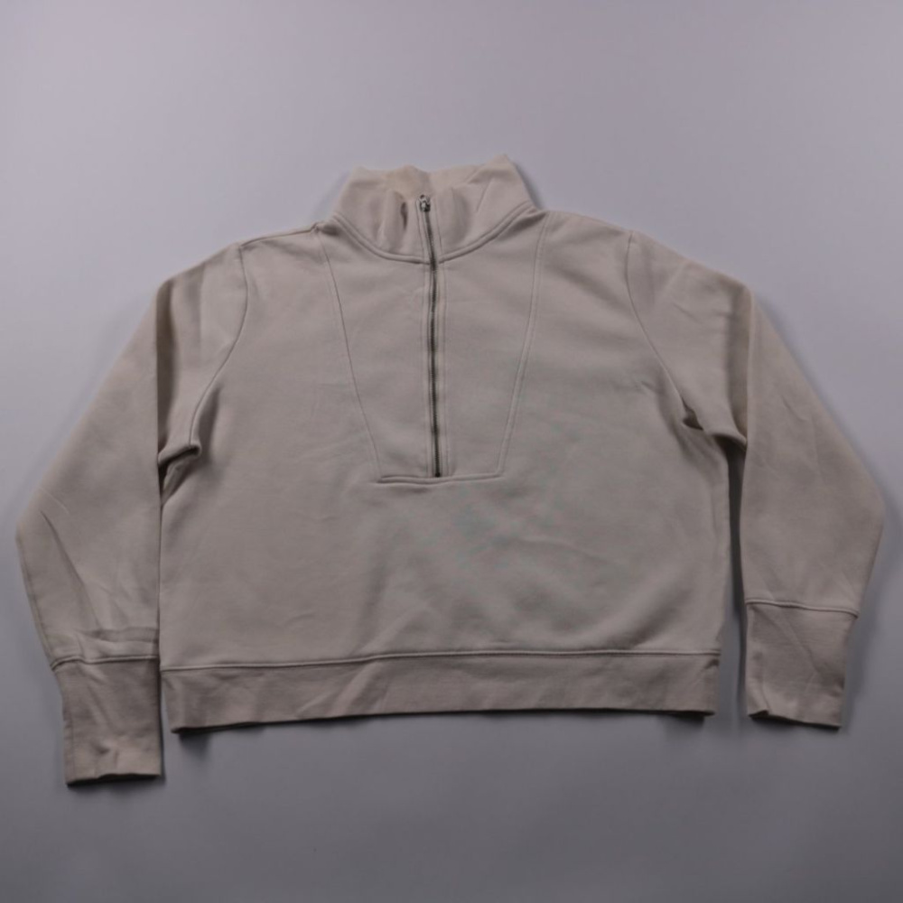 Кофта H&M в бежевом цвете с высоким воротником и короткой молнией. Подойдёт для повседневных образов и прогулок в прохладную погоду, удобно носить как второй слой. Плотный трикотаж со слегка эластичной структурой, простая в уходе.