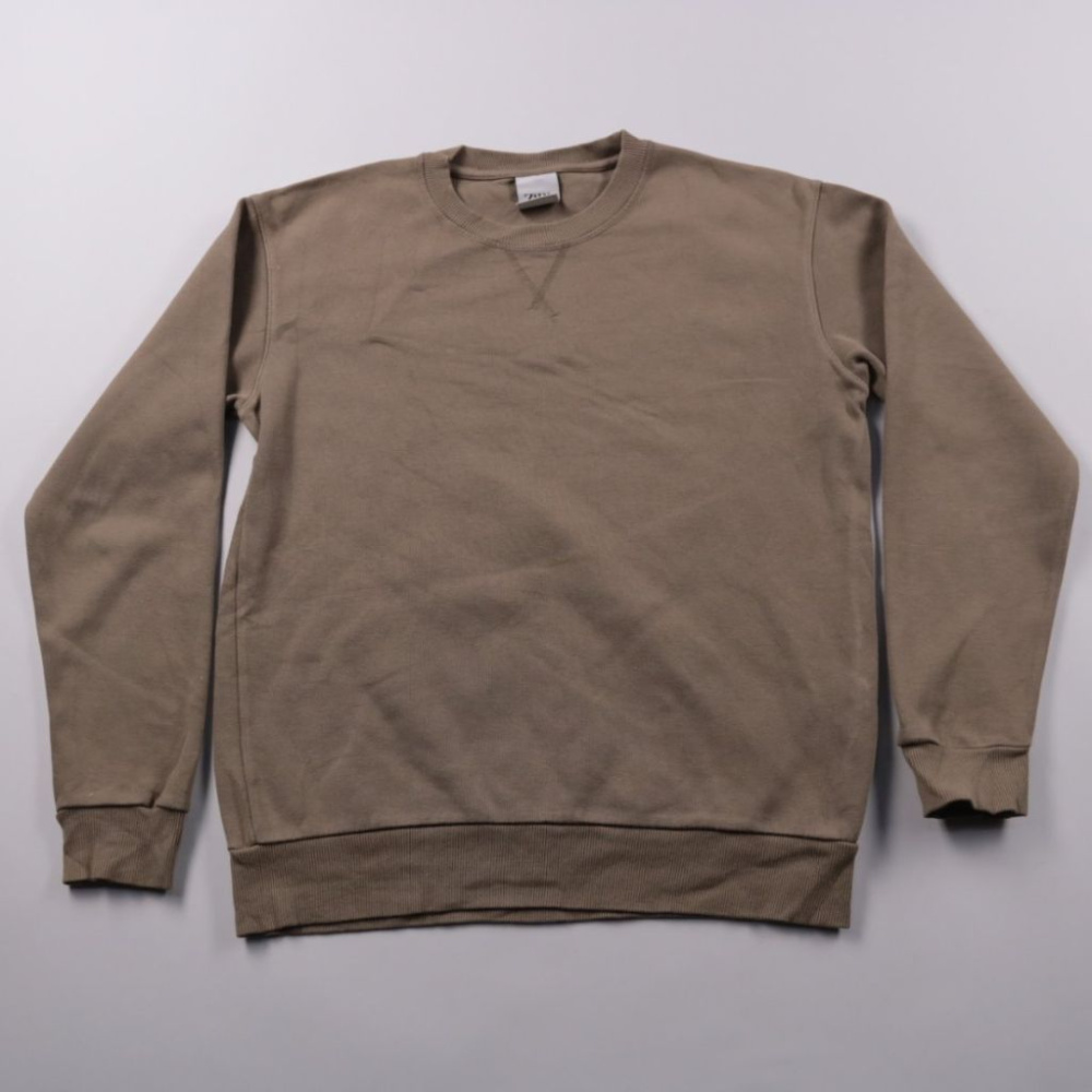 Свитшот Zara базового кроя с круглым вырезом и эластичными манжетами, спокойный бежево-коричневый оттенок. Подойдёт для повседневных образов на прохладную погоду и как слой под куртку. Практичен в уходе и хорошо сочетается с джинсами и брюками.