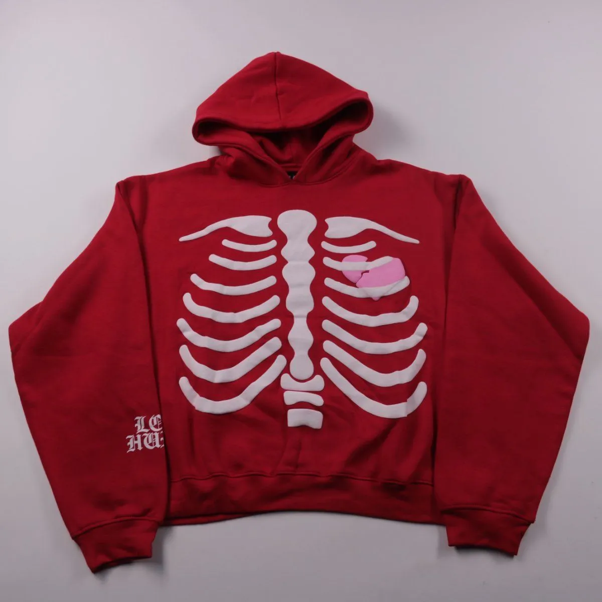 Худи BoohooMAN красного цвета с контрастным принтом «скелет» и капюшоном. Подойдёт для повседневных образов и стритстайла в прохладную погоду. Мягкий футер с высоким содержанием хлопка комфортно носится и прост в уходе.
