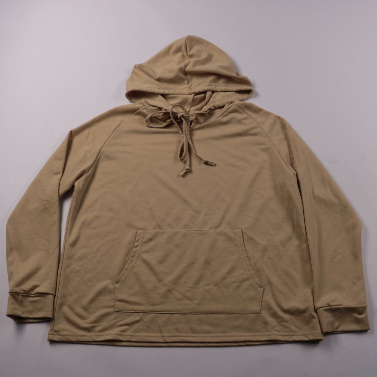Худи UOO бежевого цвета с капюшоном на шнурке и карманом-кенгуру. Подойдёт для повседневной носки и прогулок в прохладную погоду. Практичное преимущество — натуральный состав с льном и хлопком, дышит и комфортно сидит.