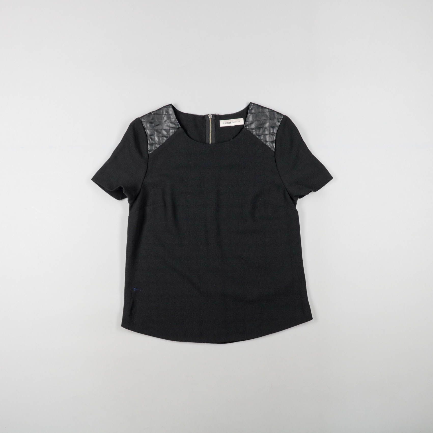 Женская футболка Limited чёрного цвета с лаконичным кроем и стёгаными вставками на плечах/верхней части спинки. Подойдёт для офиса и повседневных образов, легко сочетается с брюками, джинсами и юбками. Практичное преимущество — плотный материал и молни...