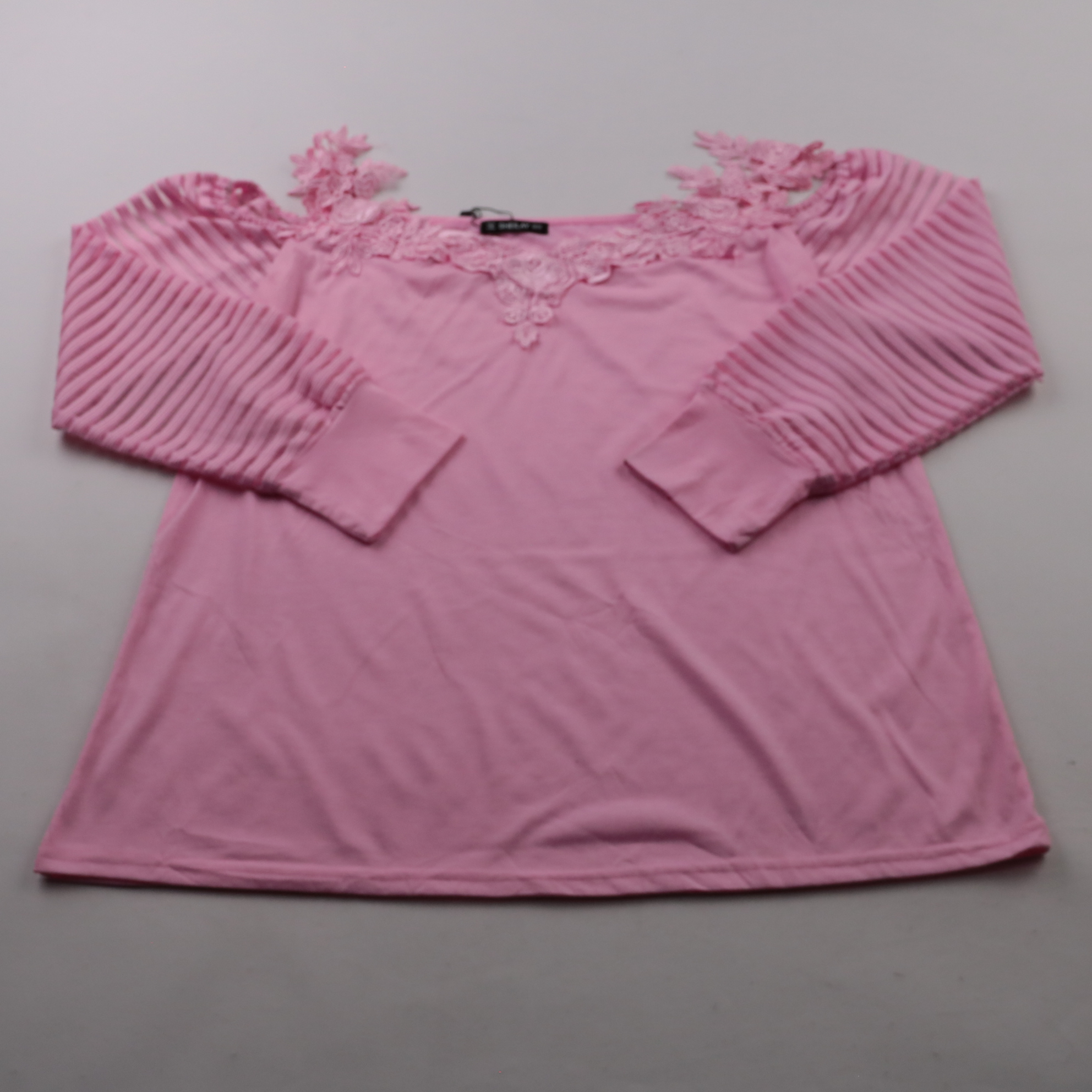 Розовый лонгслив Sheilay с декоративным кружевом у выреза и фактурными рукавами в рубчик. Подойдёт для повседневных образов и на выход, когда хочется добавить нежный акцент. Мягкий трикотаж комфортно носится и легко сочетается с джинсами и юбками.