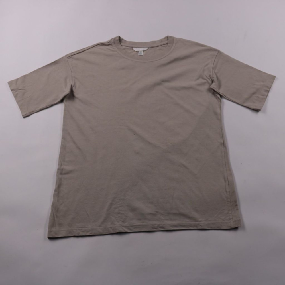 Женская базовая футболка H&M спокойного бежевого оттенка, прямой крой и круглый вырез. Подойдёт для повседневных образов и как нижний слой под пиджак/кардиган. Натуральный хлопок приятно ощущается на коже и легко стирается.