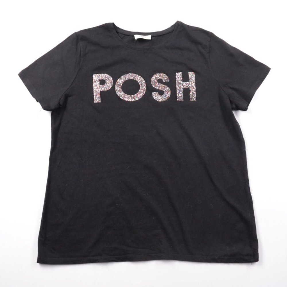 Женская футболка Papaya из 100% хлопка, чёрного цвета, с блестящей надписью «POSH» на груди. Подойдёт для повседневных образов и прогулок, хорошо сочетается с джинсами и шортами. Практичный плюс — хлопок дышит и комфортен в носке.
