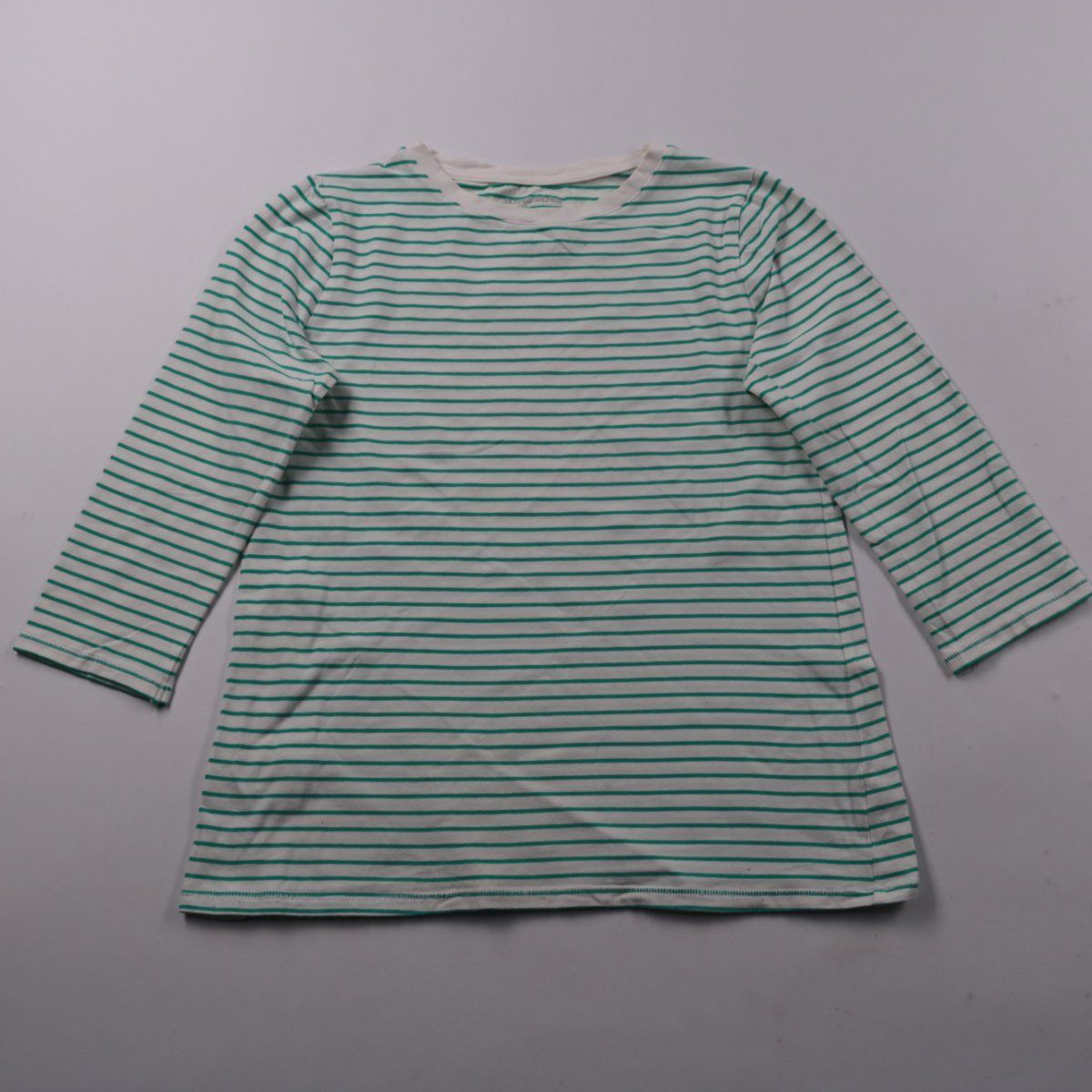 Женский лонгслив Dunnes Stores в бело-зелёную полоску, мягкий трикотаж с небольшой эластичностью. Подойдёт для повседневных образов и как базовый слой в прохладную погоду. Материал тянется и комфортно садится по фигуре.