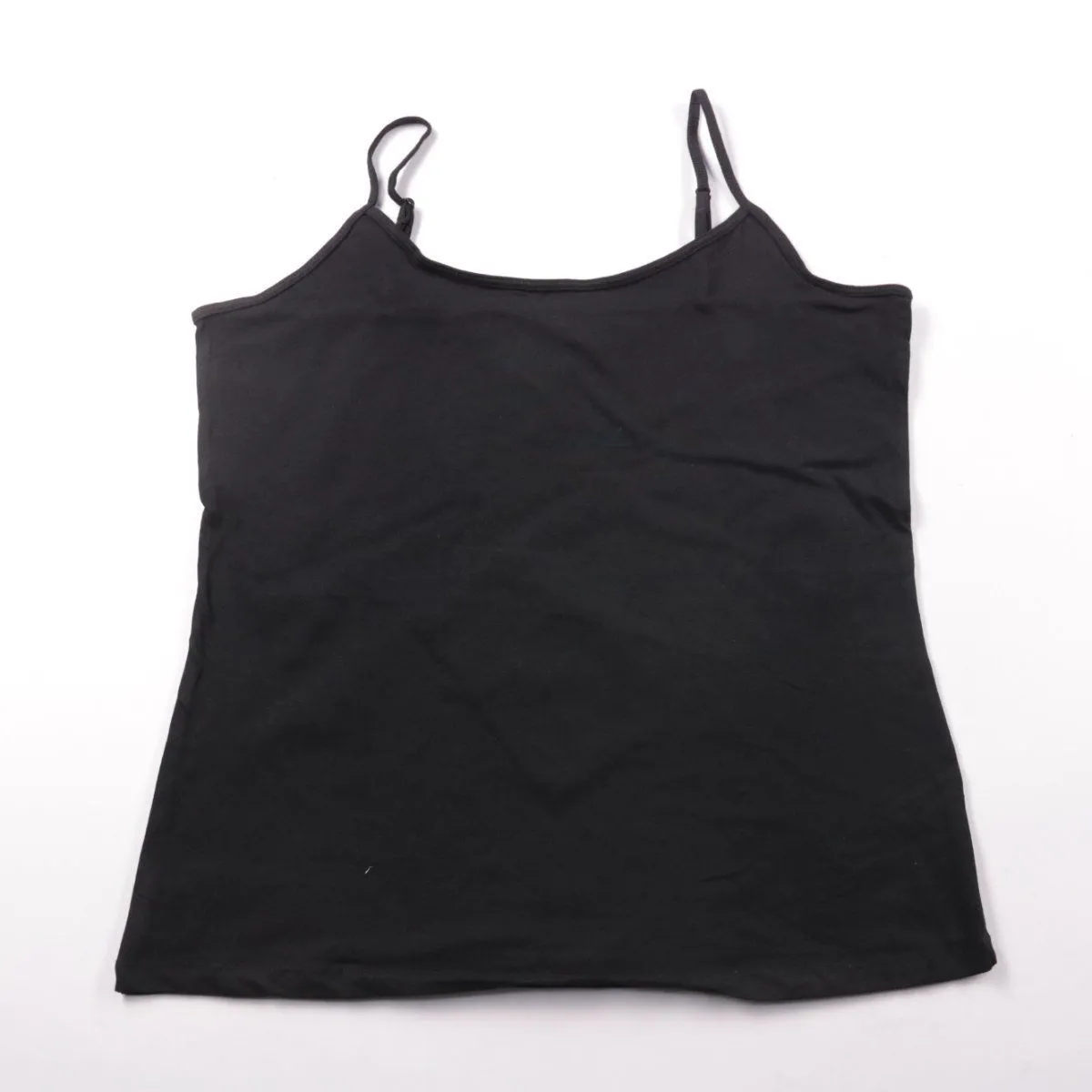 Чёрная облегающая майка на тонких бретелях George Everyday Basics (Fitted Cami). Подойдёт как базовый слой под жакет/кардиган или для повседневных летних образов. Хлопок с эластаном тянется и комфортно садится по фигуре.