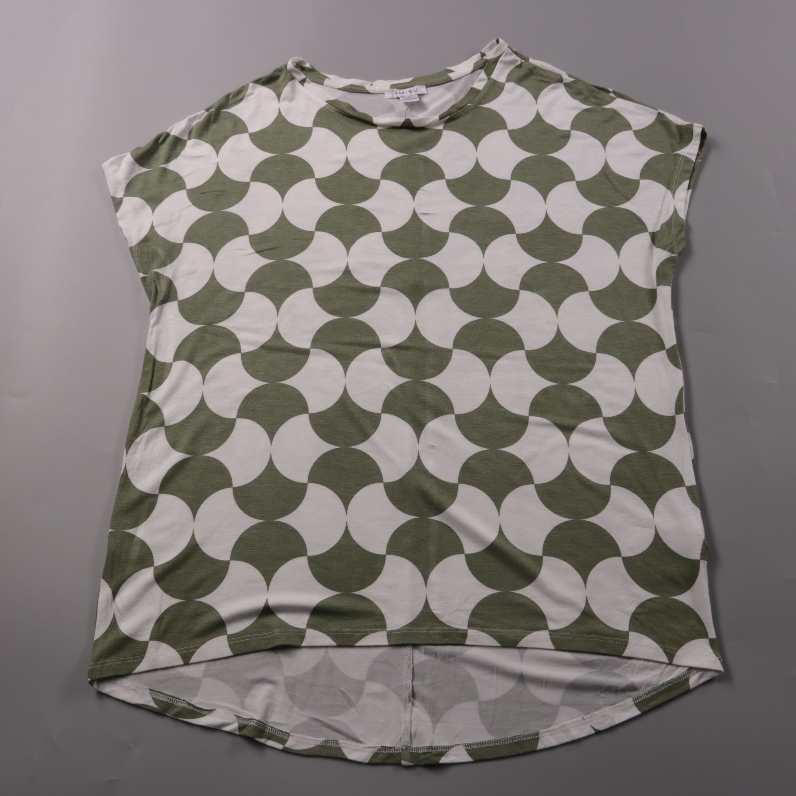 Женская футболка Amisu с круглым вырезом и коротким цельнокроеным рукавом, принт в зелёно-белую геометрию. Подойдёт для повседневной носки и летних образов с джинсами или шортами. Вискоза с добавлением эластана даёт мягкость и небольшую эластичность в ...