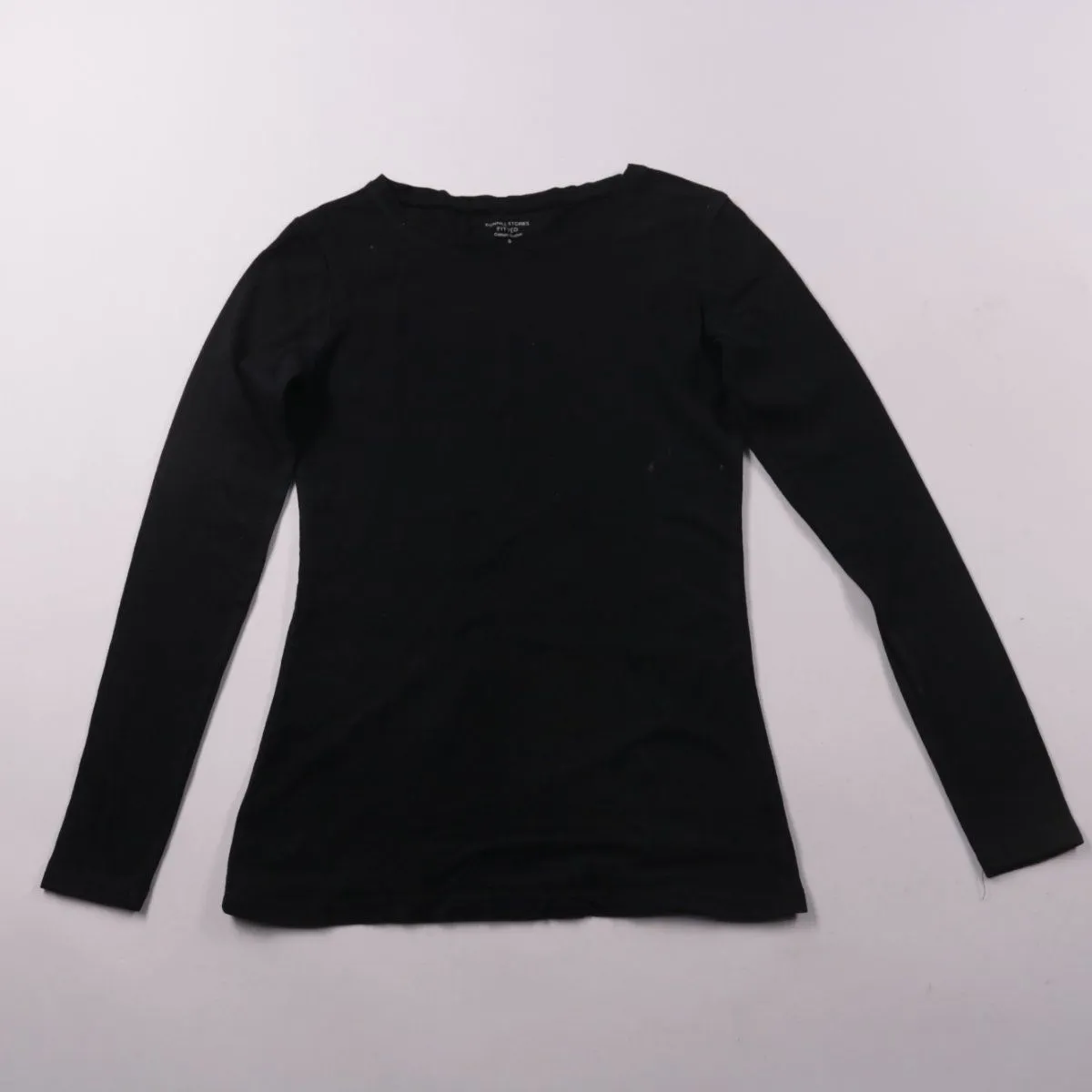 Черный облегающий лонгслив Dunnes Stores из хлопкового стрейча с круглым вырезом. Подойдет для повседневных образов, как базовый слой под жакет или кардиган. Ткань тянется и комфортно садится по фигуре.