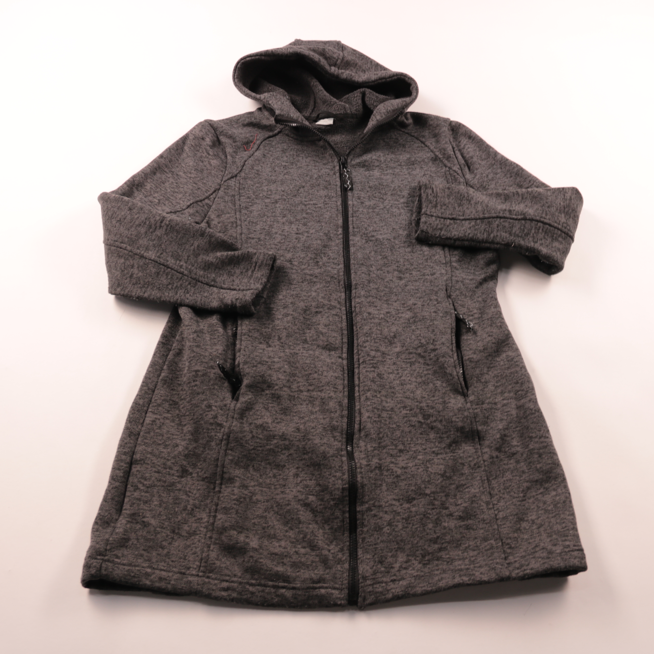 Удлинённая куртка True серого меланжа на молнии с капюшоном и боковыми карманами. Подойдёт для прогулок и повседневной носки в прохладную погоду. Практичный материал легко сочетается с базовыми вещами и не требует сложного ухода.