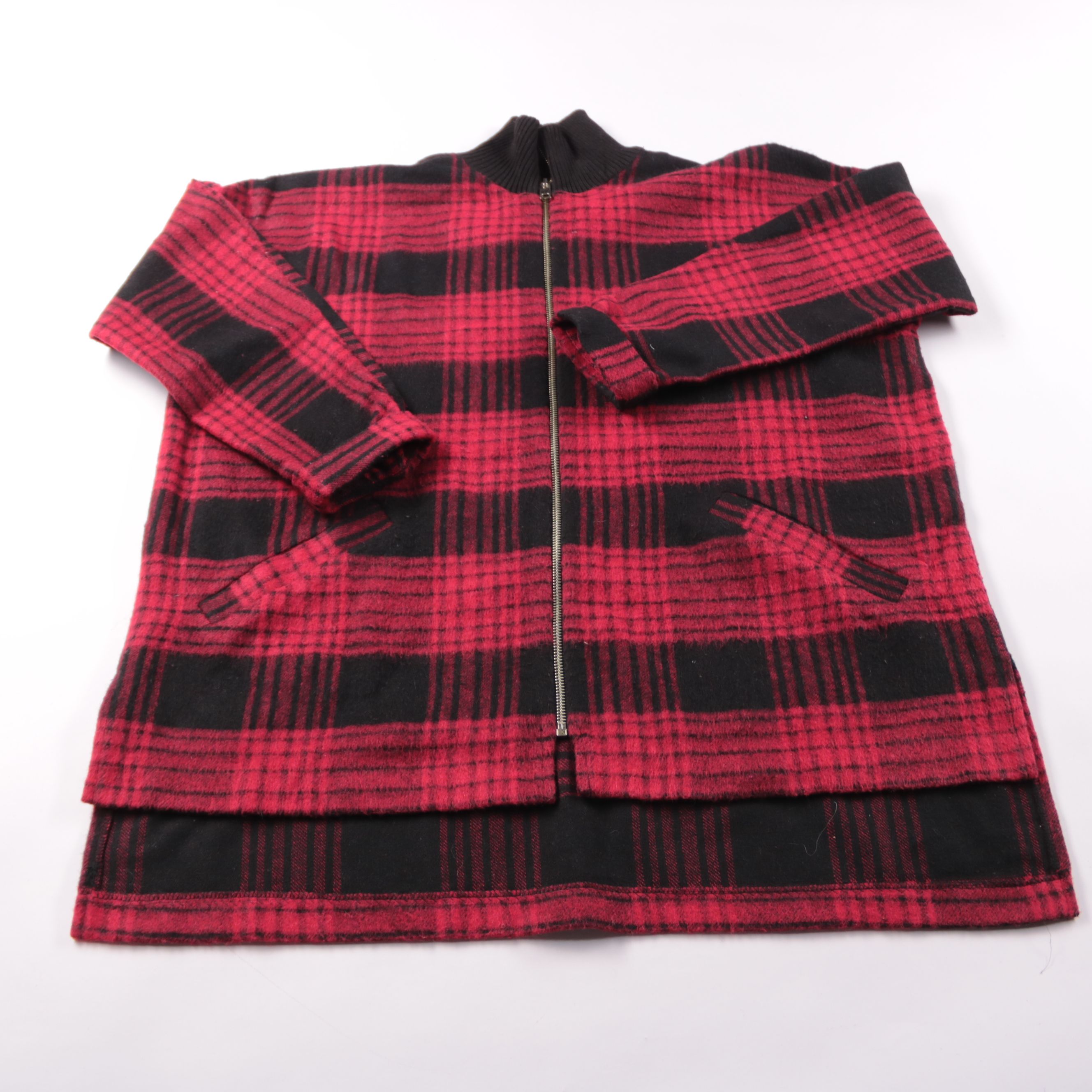 Куртка River Island в красно-чёрную клетку на молнии с воротником-стойкой. Подойдёт для повседневных образов в прохладную погоду, удобно носить в межсезонье. Плотная смесовая ткань хорошо держит форму и меньше мнётся.