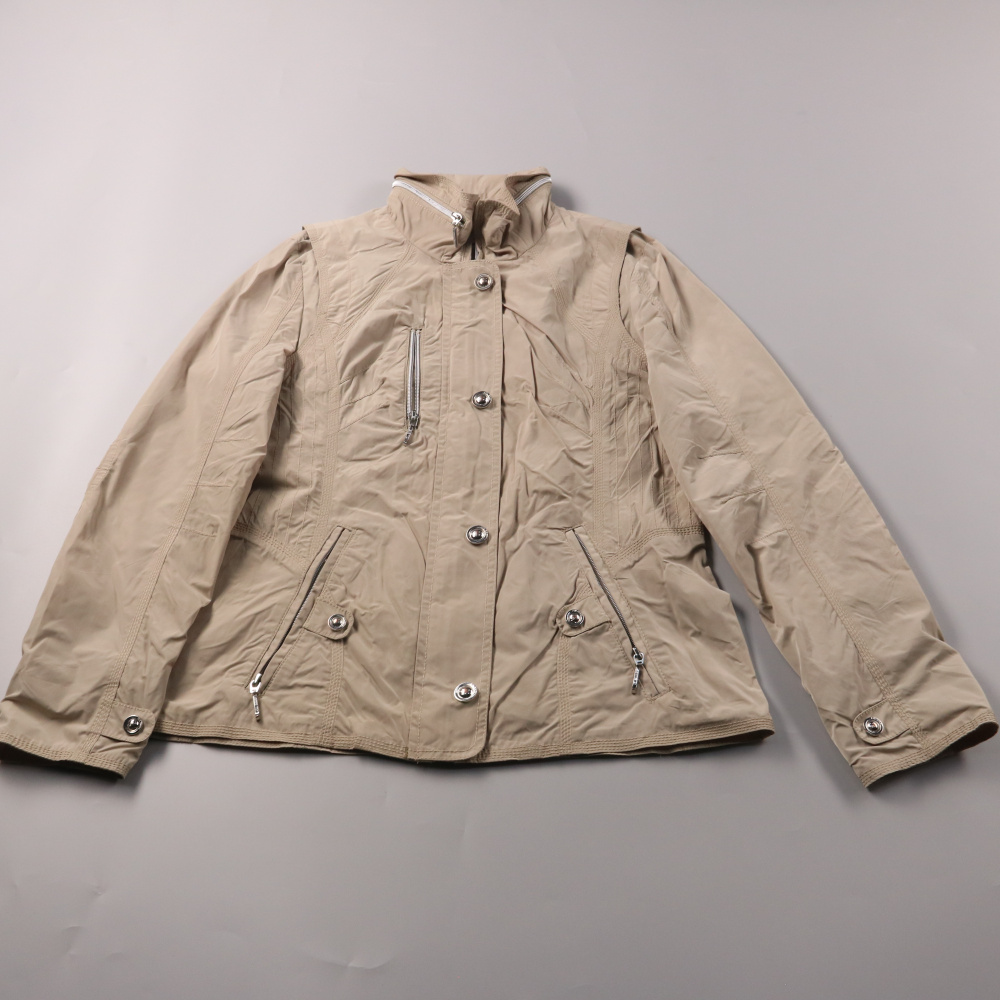 Лёгкая женская куртка Gil Bret бежевого цвета с воротником-стойкой, застёжкой на кнопках и карманами на молниях. Подойдёт для весны/осени и прохладных летних вечеров, легко сочетается с джинсами и брюками. Практичная немаркая ткань и удобные карманы дл...