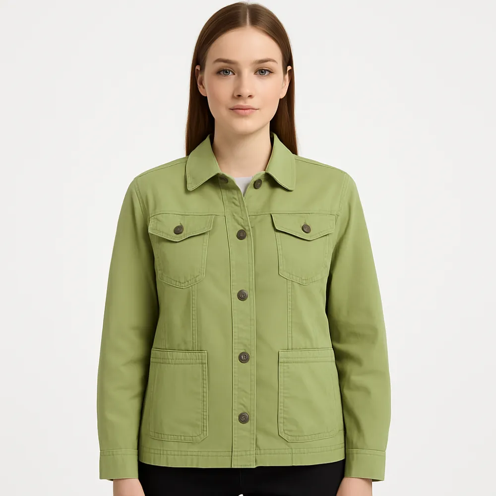 Лёгкая женская куртка Cecil в стиле жакета-рубашки, однотонная, с отложным воротником и застёжкой на пуговицы. Подойдёт для прогулок и повседневных образов в тёплую весну/осень, удобно носить поверх футболки или тонкого джемпера. Практичные накладные к...