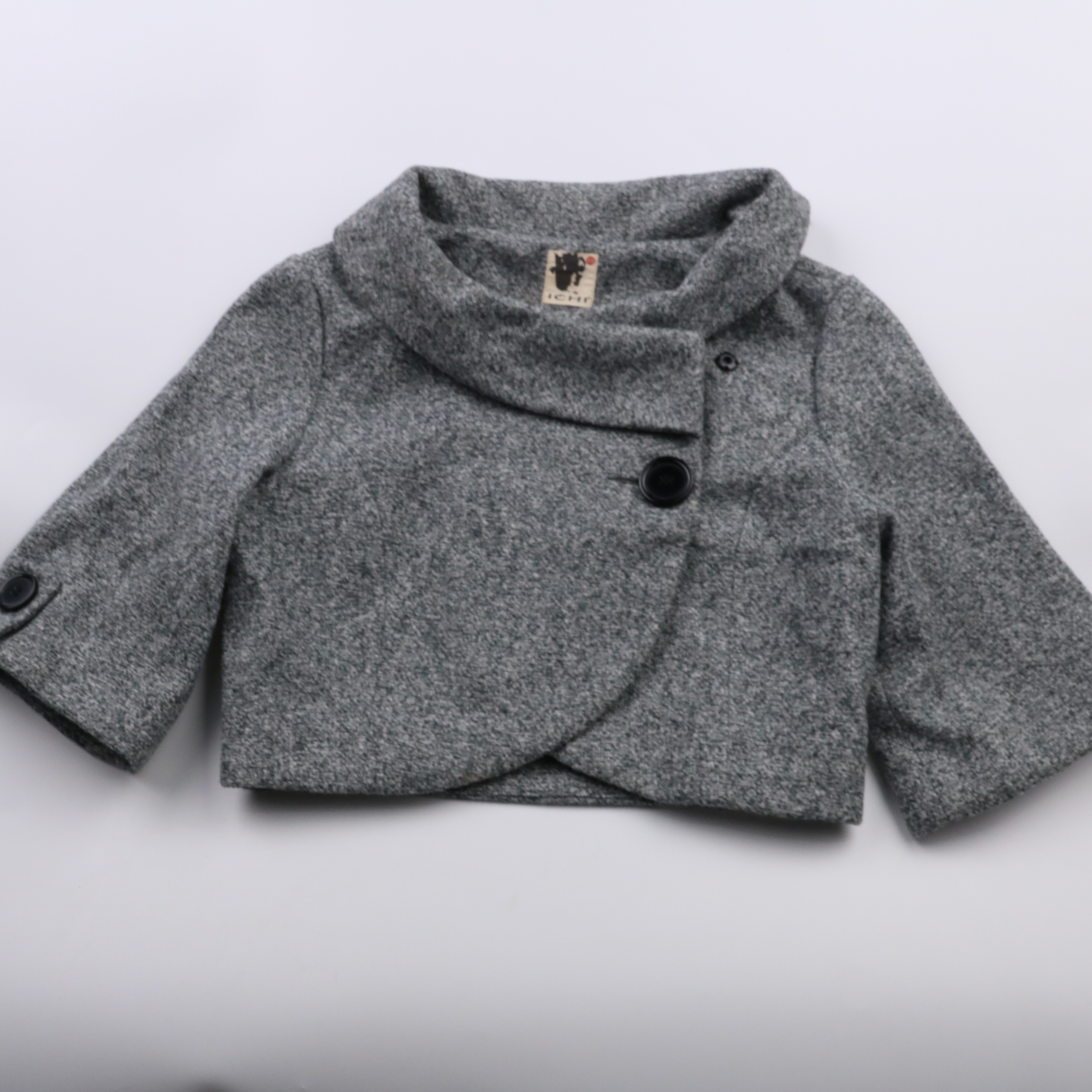 Короткая куртка Ichi из серой пальтовой ткани с асимметричной застёжкой на пуговицу и высоким воротником-стойкой. Подойдёт для прохладной весны и осени, удобно носить с платьями и брюками. Практичный плюс — плотный материал и подкладка помогают держать...
