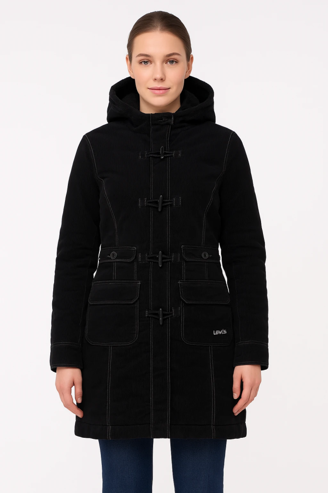 Женское пальто QS by s.Oliver чёрного цвета с капюшоном и застёжкой на клеванты. Подойдёт для прохладной погоды в городе и на каждый день, благодаря прямому крою и вместительным карманам. Плотная хлопковая ткань и подкладка из полиамида делают вещь пра...