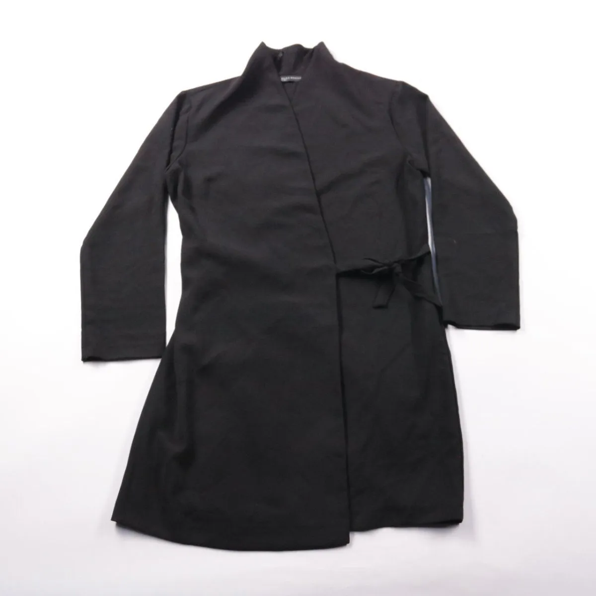 Женское пальто Zara в чёрном цвете с запахом и поясом, лаконичный прямой силуэт. Подойдёт для офиса и повседневных образов в демисезон. Пояс позволяет регулировать посадку по талии и удобно комбинируется с разной обувью.