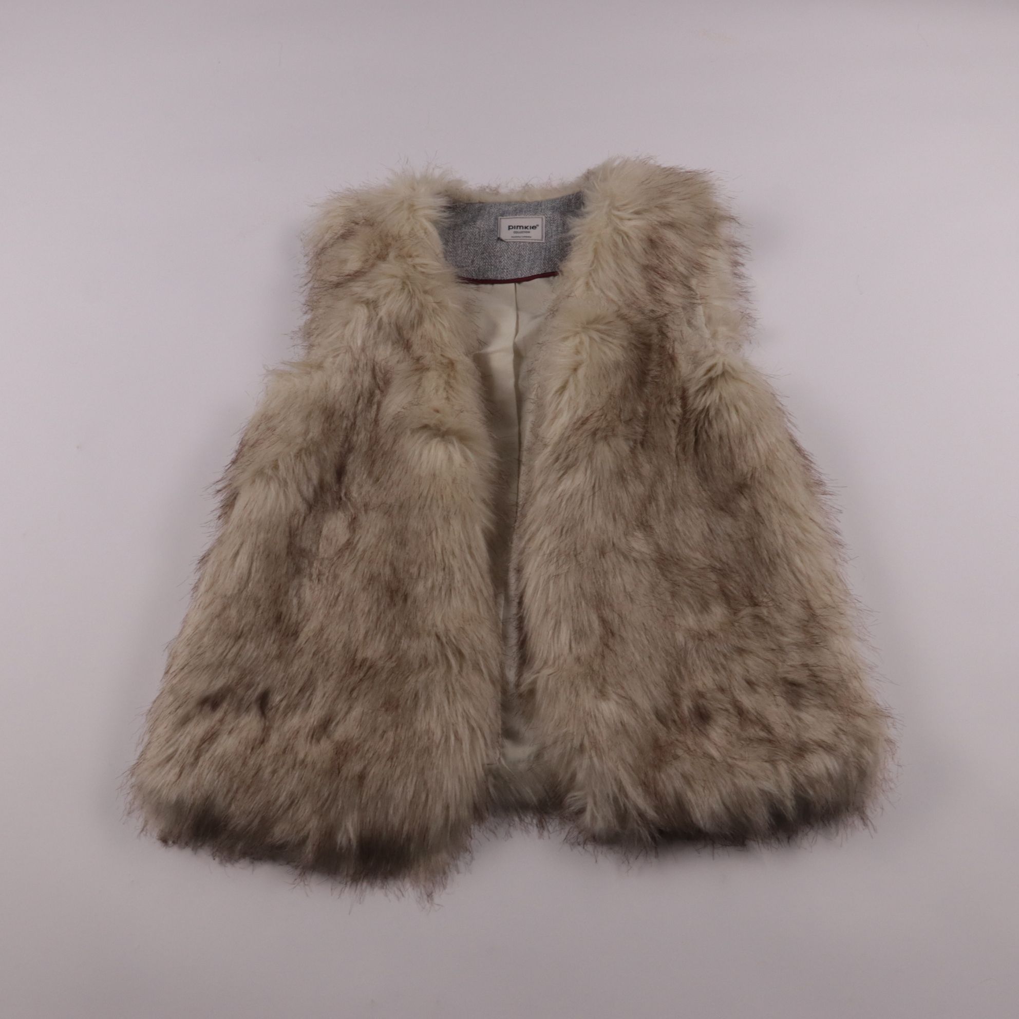 Меховой жилет Pimkie из искусственного меха в бежево-коричневой гамме. Подойдёт для прохладной погоды и многослойных образов с джинсами или платьем. Лёгкий и тёплый за счёт объёмного ворса и подкладки.