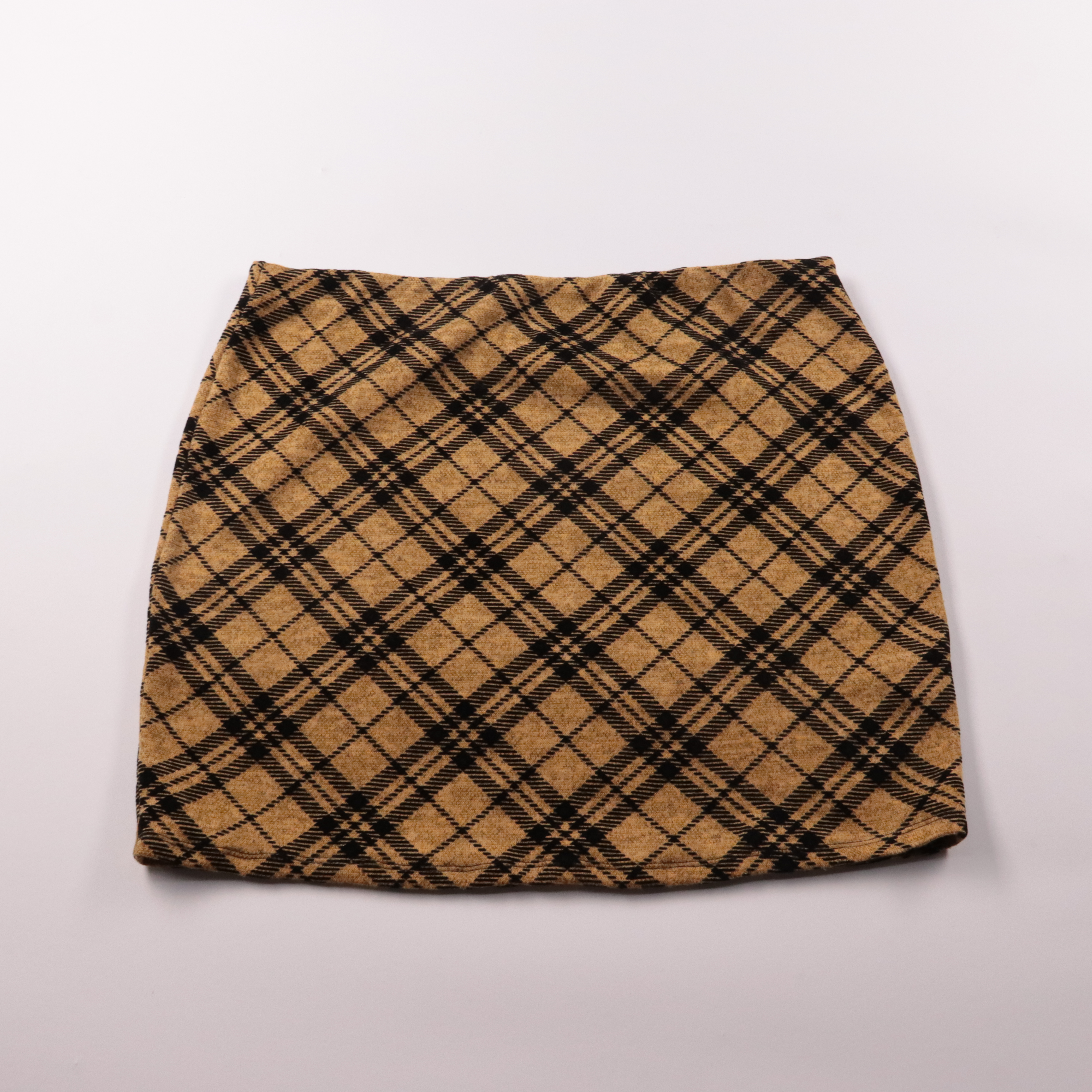 Юбка My Own в бежево-чёрную клетку, короткая и лаконичная по посадке. Подойдёт для офиса и повседневных образов в демисезон, хорошо сочетается с однотонными свитерами и водолазками. Практичный плотный материал держит форму и не мнётся слишком быстро.