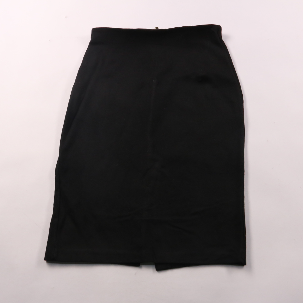 Юбка H&M чёрного цвета, прямого кроя и длины миди, с разрезом сзади. Подойдёт для офиса и повседневных образов — легко сочетать с рубашкой, водолазкой или жакетом. Плотная эластичная ткань комфортно садится по фигуре и не сковывает движения.