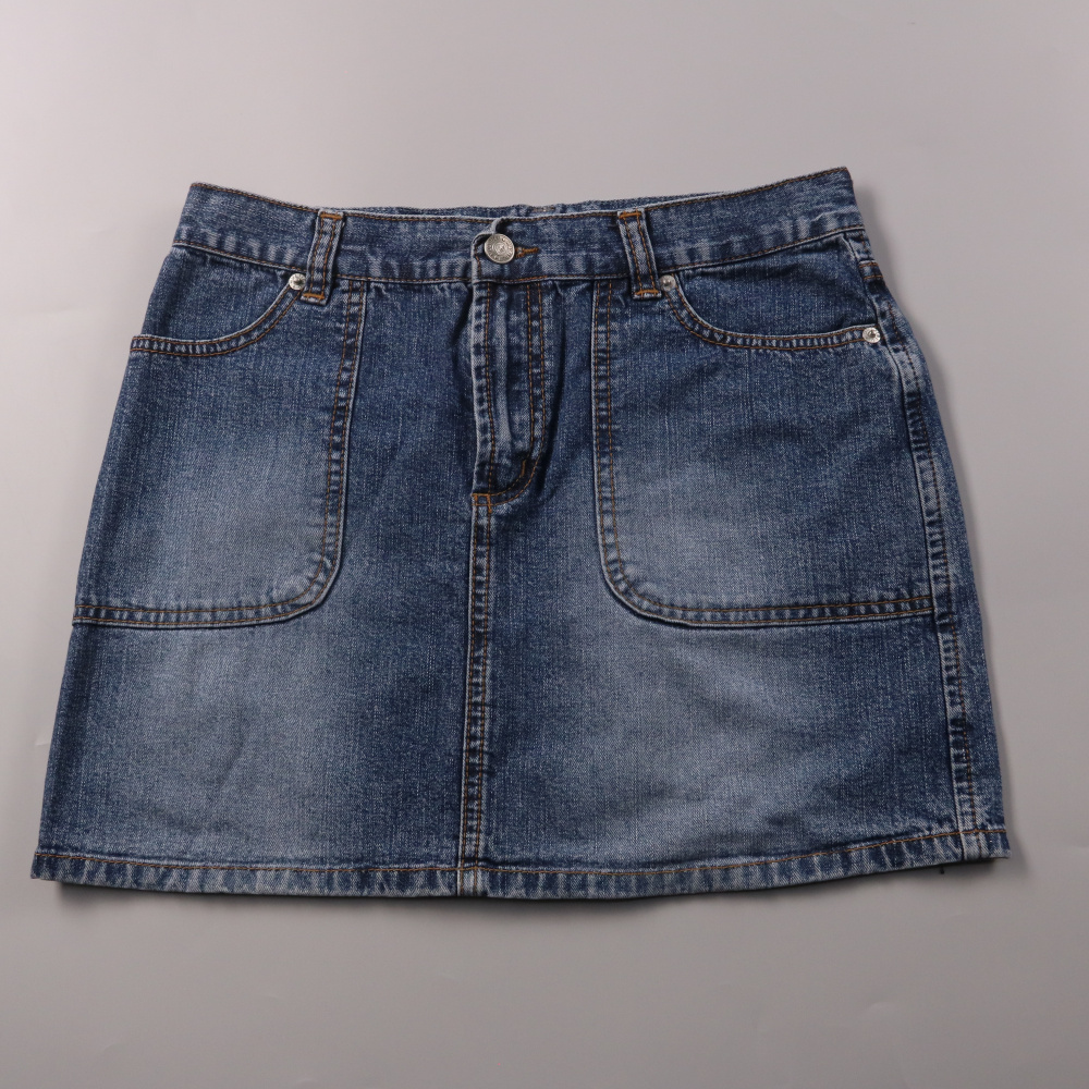 Джинсовая юбка Multiblu из 100% хлопка, классический синий деним с крупными накладными карманами спереди. Подойдёт для повседневных образов летом и в демисезон с колготками и ботинками. Плотная ткань хорошо держит форму и не требует сложного ухода.