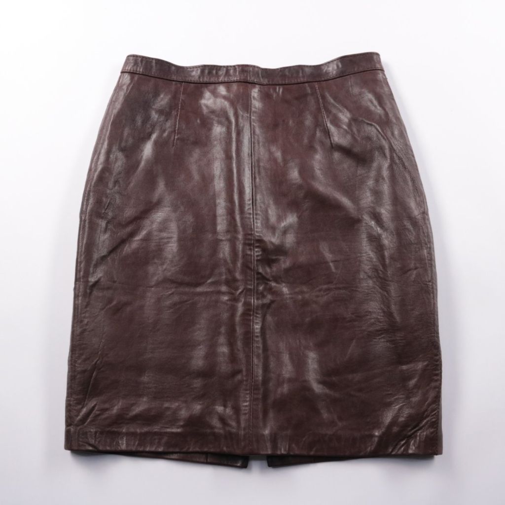 Женская кожаная юбка из натуральной овчины тёмно-коричневого цвета, прямого силуэта. Подойдёт для повседневных и офисных образов в демисезон и прохладное лето. Плотная кожа хорошо держит форму и носится долго.